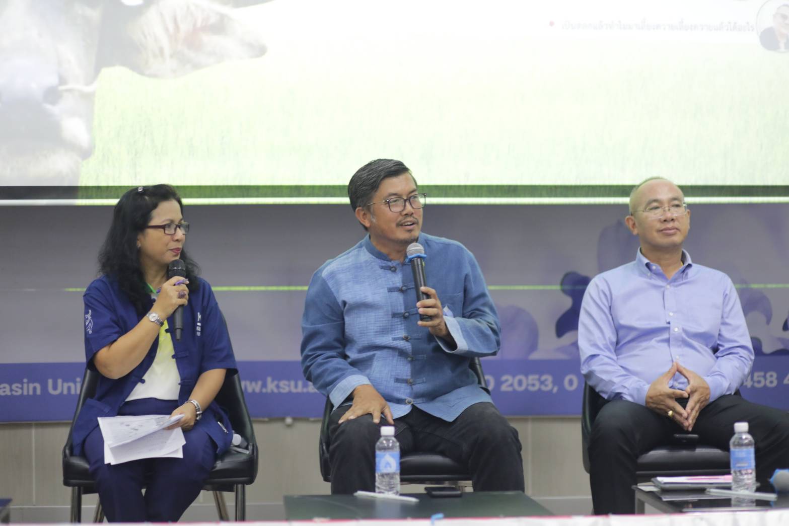 วันที่ 28 มิถุนายน 2567 ที่หอประชุมอเนกประสงค์ มหาวิทยาลัยกาฬสินธุ์ พื้นที่ในเมือง รองศาสตราจารย์จิระพันธ์ ห้วยแสน อธิการบดีมหาวิทยาลัยกาฬสินธุ์ เป็นประธานเปิดการเสวนาในหัวข้อ "คนค้นควาย พลิกโฉมควายไทย" หนึ่งในกิจกรรมงานเกษตรแฟร์กาฬสินธุ์ ครั้งที่ 3 ซึ่งเวทีเสวนามหาวิทยาลัยกาฬสินธุ์ร่วมกับมหาวิทยาลัยเกษตรศาสตร์ และภาคีเครือข่ายจัดขึ้น เพื่อเปิดประสบการณ์ แนวคิด ของคนเลี้ยงควาย ผู้ที่มีส่วนเกี่ยวข้องในเรื่องของควาย ทั้งภาคเกษตรกร ภาคการศึกษา ภาครัฐ และภาคเอกชน ได้เห็นถึงความสำคัญ ทิศทางอนาคตการพัฒนา และความอยู่รอดของควายไทย ในโลกปัจจุบันที่มีอัตราการแข่งขันสูงในทุกด้าน