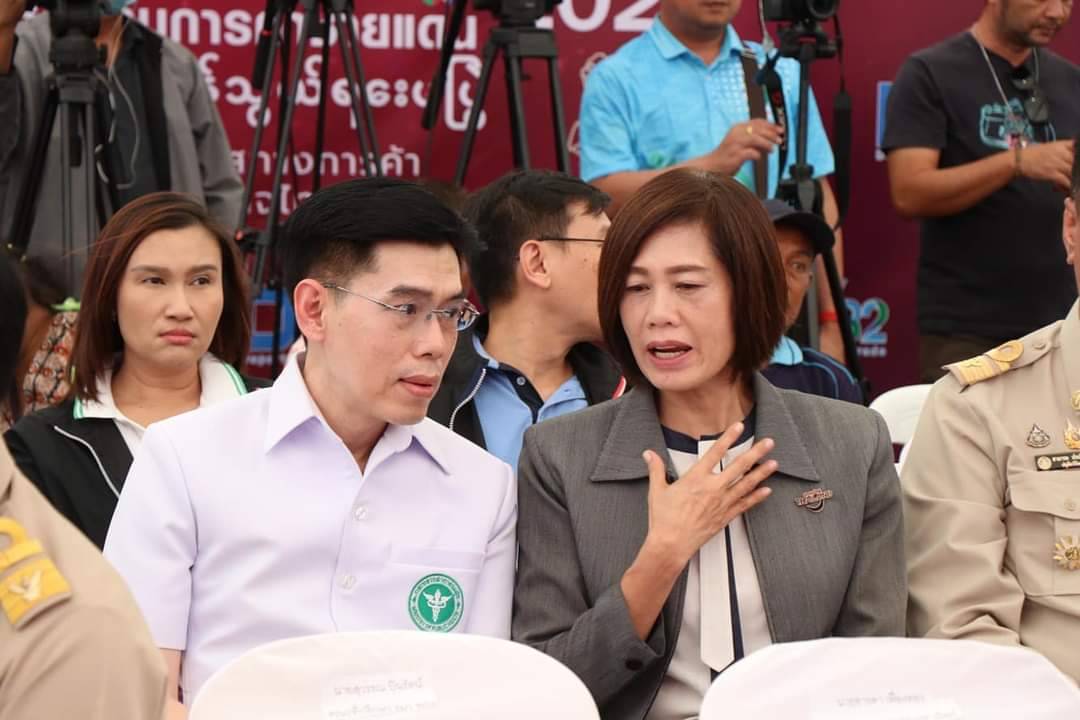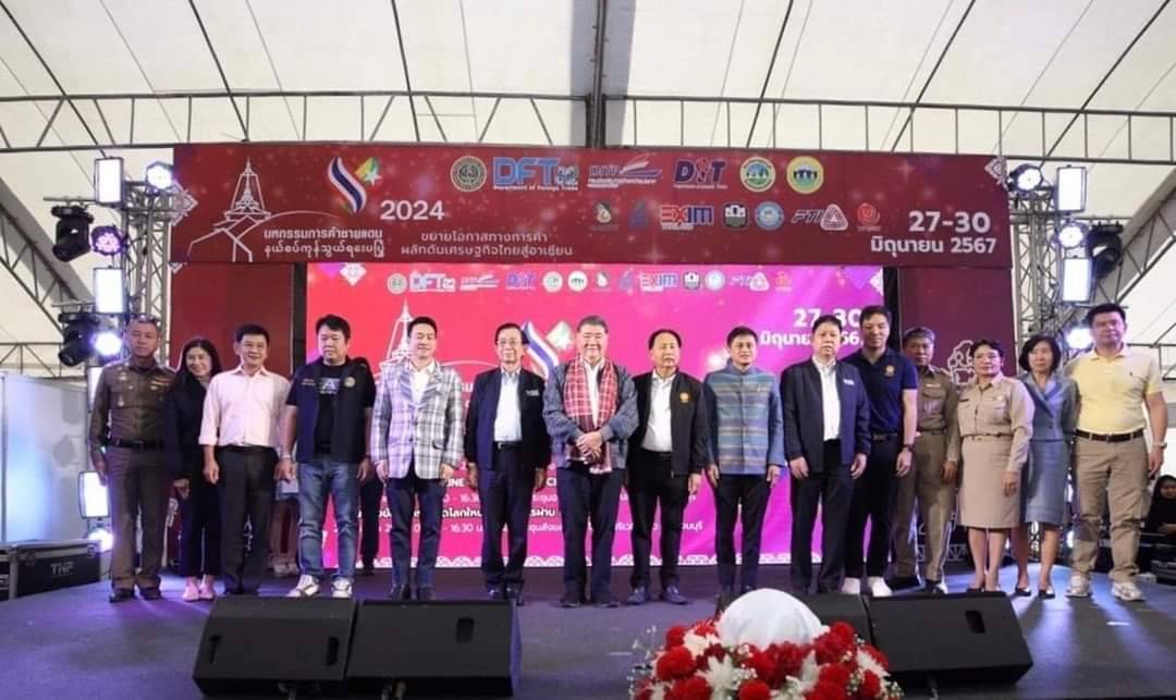 น.พ.ปริพนท์ จุลเจิม นายแพทย์สาธารณสุขจังหวัดกาญจนบุรี และหัวหน้าส่วนราชการ ทหาร ตำรวจ ฝ่ายปกครองฯ ร่วมงานกันโดยพร้อมเพรียงซึ่งการจัดงานในครั้งนี้ กรมการค้าต่างประเทศ กระทรวงพาณิชย์ จัดขึ้น ระหว่างวันที่ 27-30 มิถุนายน 2567 เพื่อกระตุ้นเศรษฐกิจการค้าชายแดนและผ่านแดนของไทยและประเทศเพื่อนบ้านให้เติบโตอย่างยั่งยืนตามนโยบายรัฐบาล ภายในงานนำสินค้าอุปโภคบริโภค สินค้าเกษตรและผลไม้ และสินค้าจากวิสาหกิจชุมชน แลถสินค้าธงฟ้าราคาประหยัด มาจำหน่ายให้ประชาชนและนักท่องเที่ยวได้เลือกซื้อ