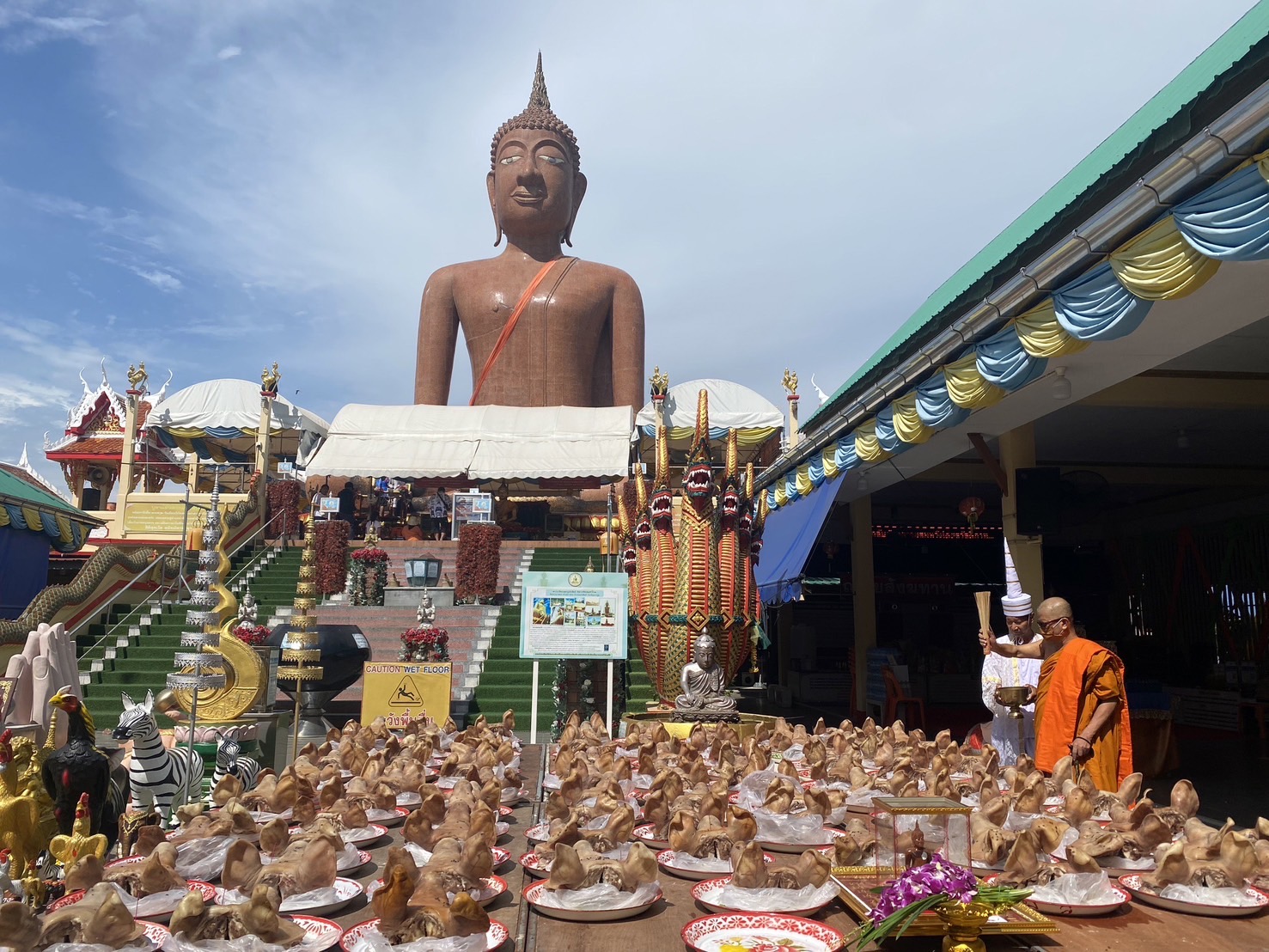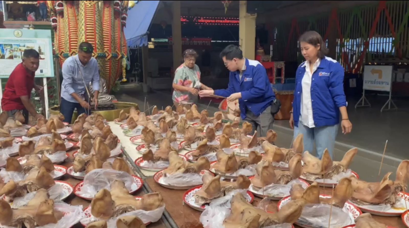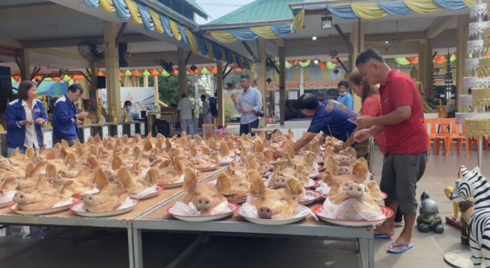 นครปฐม-สาวเมืองกาญจน์ นำหัวหมู102หัว แก้บนหลวงพ่อสมหวังหลังได้รับงานเขียนแบบก่อสร้างงานใหญ่โครงการรัฐ