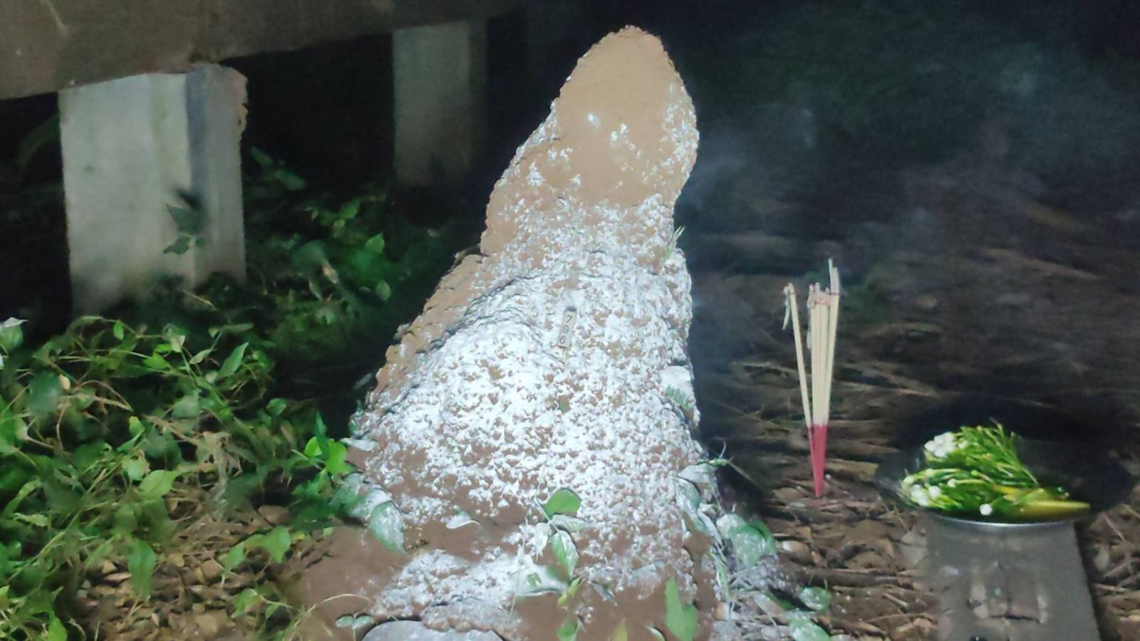 คอหวยแห่ขอเลขจอมปลวกคล้ายปลัดขิก ด้านชาวบ้านเชื่อมาให้โชคลาภ