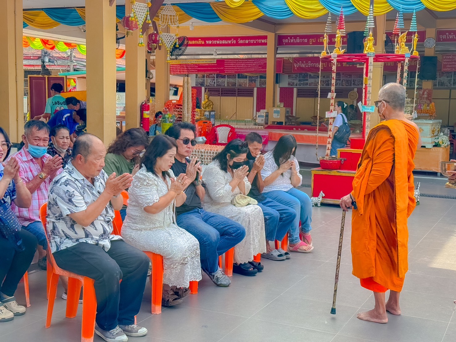 จากนั้นทางด้าน วัดกลางบางพระได้นำสิ่งของมาถวายองค์หลวงพ่อสมหวัง วัดกลางบางพระ และมอบให้กับวัดกลางบางพระบางส่วน เพื่อนำไป ร่วมกิจกรรม "11 โครงการงานสาธารณสงเคราะห์" แจกเป็นทาน แก่ผู้ป่วยติดบ้าน ผู้ป่วยติดเตียง ผู้สูงอายุ และผู้ยากไร้ เพื่อเป็นการต่อบุญ ร่วมกับวัดกลางบางพระ ต่อไป และจะขอแบ่งของที่นำมาแก้บนถวาย มอบให้กับทางวัดถวายให้วัดลางส่วนจะนำไปแจกทานให้กับชาวบ้านและเพื่อประโยชน์ที่ทางวัด จะได้นำไปบำเพ็ญทานให้เกิดประโยชน์ ต่อไปในครั้งนี้อีกด้วย