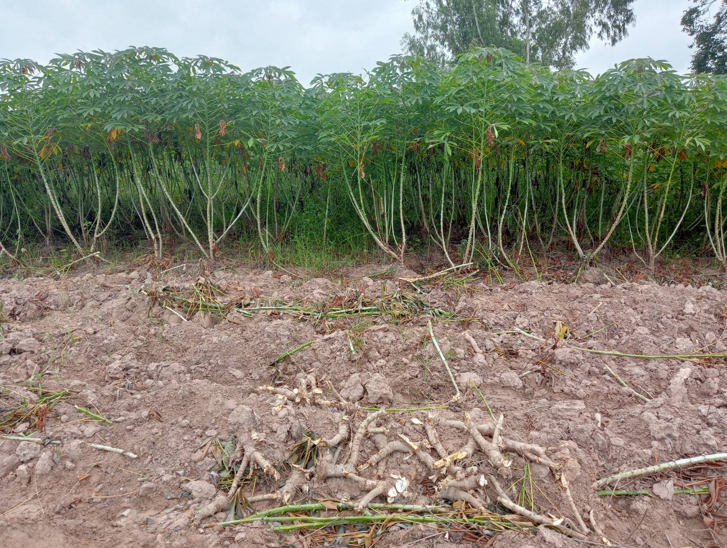 วันที่ 29 กรกฎาคม 2567 ผู้สื่อข่าวรายงานว่า จากการติดตามบรรยากาศการเก็บผลผลิตมันสำปะหลัง ของชาวไร่มันในพื้นที่ จ.กาฬสินธุ์ ในช่วงนี้ พบหลายรายที่มันสำปะหลังได้อายุ 6-7 เดือนพร้อมเก็บผลผลิต กำลังระดมแรงงานเก็บเกี่ยว เพื่อให้แล้วเสร็จก่อนที่ฝนจะตกชุก หรือเกิดภาวะน้ำท่วม ที่จะเป็นสาเหตุทำให้หัวมันสำปะหลังเน่าเสียหาย ขณะเดียวกันพบว่ามีชาวไร่มันสำปะหลังจำนวนไม่น้อยที่เก็บเกี่ยวไม่เสร็จ และมีจำนวนอีกมากที่ปล่อยให้ต้นมันสำปะหลังในไร่ เติบโตเองตามธรรมชาติ โดยไม่ใส่ปุ๋ยเคมีหรือฉีดฮอร์โมนบำรุง ทำให้ต้นมันสำปะหลังจำนวนหลายร้อยไร่ แคระแกรน ไม่เติบโตตามอายุ