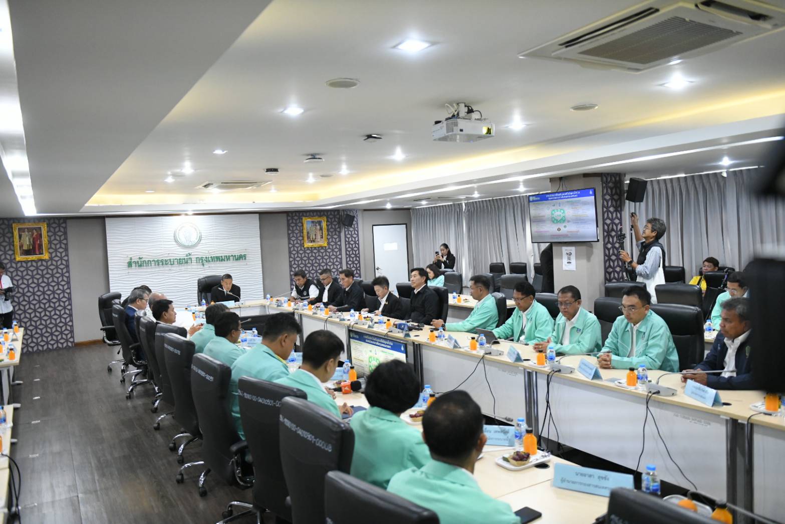 โอกาสนี้มี นายพรหมินทร์ เลิศสุริย์เดช เลขาธิการนายกรัฐมนตรี นายณณัฏฐ์ หงษ์ชูเวช รองเลขาธิการนายกรัฐมนตรีฝ่ายการเมือง นายชัย วัชรงค์ โฆษกประจำสำนักนายกรัฐมนตรี และคณะทำงานรัฐมนตรี นายสุรจิตต์ พงษ์สิงห์วิทยา ประธานสภากรุงเทพมหานคร นางวันทนีย์ วัฒนะ ปลัดกรุงเทพมหานคร นายวิศณุ ทรัพย์สมพล รองผู้ว่าราชการกรุงเทพมหานคร นายภิมุข สิมะโรจน์ เลขานุการผู้ว่าราชการกรุงเทพมหานคร นายอรรถเศรษฐ์ เพชรมีศรี ที่ปรึกษาของผู้ว่าราชการกรุงเทพมหานคร นายณรงค์ เรืองศรี รองปลัดกรุงเทพมหานคร นายสุราษฎร์ เจริญชัยสกุล ผู้อำนวยการสำนักการระบายน้ำ พร้อมด้วยคณะผู้บริหาร ข้าราชการ และเจ้าหน้าที่สำนักการระบายน้ำ และหน่วยงานที่เกี่ยวข้อง ร่วมประชุม