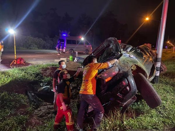 มหาสารคาม-หนุ่มร้อยเอ็ดขับทำธุระที่กทม.แต่เกิดเหตุรถยนต์เสียหลักชนเสาไฟฟ้าลงร่องกลาง เบื้องต้นบาดเจ็บ 5 ราย