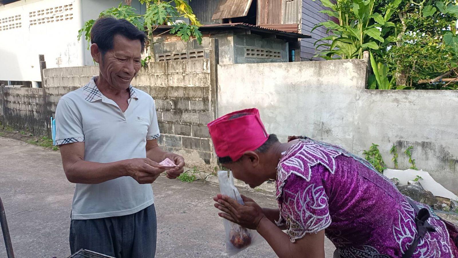 วันนี้ 8 ส.ค.67 ผู้สื่อข่าว จ.ปราจีนบุรีรายงานว่า ได้รับแจ้งพบหนุ่มใหญ่พ่อค้าขายปลาหมึกย่างขับรถ จยย.พ่วงข้างวิ่งเร่ขายไปทุกตรอกซอกซอย ที่สะดุดตาเป็นพิเศษ ตรงที่แต่งขุดลิเก แถมเวลามีลูกค้ามาซื้อปลาหมึกย่าง ระหว่างรอปลาหมึกสุก-รอราดน้ำจิ้มรสเด็ด จะร้องเพลงที่มีจังหวะรำวง หรือ สามช่าที่เนื้อหาเพลงสนุก-ใกล้ตัวโชว์ลูกคอเสียงลูกทุ่ง ๆ ไม่แพ้นักร้องอาชีพ แถมท่ารำ ท่าเต้นสนุกให้ความบันเทิงแก่ลูกค้าเป็นที่ชื่นชอบในทุกพื้นที่ที่ได้ไปขาย