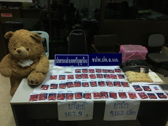 ซึ่งนายพิชชากรฯยอมรับว่าเป็นกระเป๋าของตนเอง นางสาวลักษมีฯ และ นายพิชชากรฯ ให้การรับสารภาพว่ามาส่งยาบ้า ส่วนนายกิติพงษ์ฯ ให้การว่าตนไม่ทราบว่าทั้ง 2 คนมาส่งยาบ้า ซึ่งทั้ง 2 คน ได้ชักชวนตนให้ขับรถมาเก็บเงินเพียงเท่านั้น เจ้าหน้าที่ได้ทำการขยายผลไปบ้านของ นายพิชชากรฯ ที่บ้านเลขที่ 194 หมู่ที่ 4 ตำบลนากอก อำเภอศรีบุญเรือง จังหวัดหนองบัวลำภู เมื่อถึงบ้านหลังดังกล่าว ก่อนตรวจค้นเจ้าหน้าที่ ได้เชิญผู้ใหญ่บ้าน,ผู้ช่วยผู้ใหญ่บ้าน และญาติของนายพิชชากรฯ ร่วมเป็นพยานในการตรวจค้น ผลการตรวจค้นในบ้านจุดที่ 1 พบยาบ้าซุกซ่อนอยู่ในตุ๊กตาหมีวางอยู่บนโต๊ะหน้าห้องนอนของนายพิชชากรฯ จำนวน 10 ถุง จำนวน 1,978 เม็ด และพบยาไอซ์ จำนวน 2 ถุง ถุงที่ 1 หนัก 99.5 กรัม(น้ำหนักพร้อมถุง) ถุงที่ 2 หนัก 83.7 กรัม(น้ำหนักพร้อมถุง) จุดที่ 2 พบยาบ้าซุกซ่อนอยู่ในตระกร้าสีชมพูวางอยู่หน้าประตูห้องนอนของนายพิชชากรฯ ยาบ้า จำนวน 1 ก้อน ตรวจนับภายใน จำนวน 30 ถุง 6,000 เม็ด