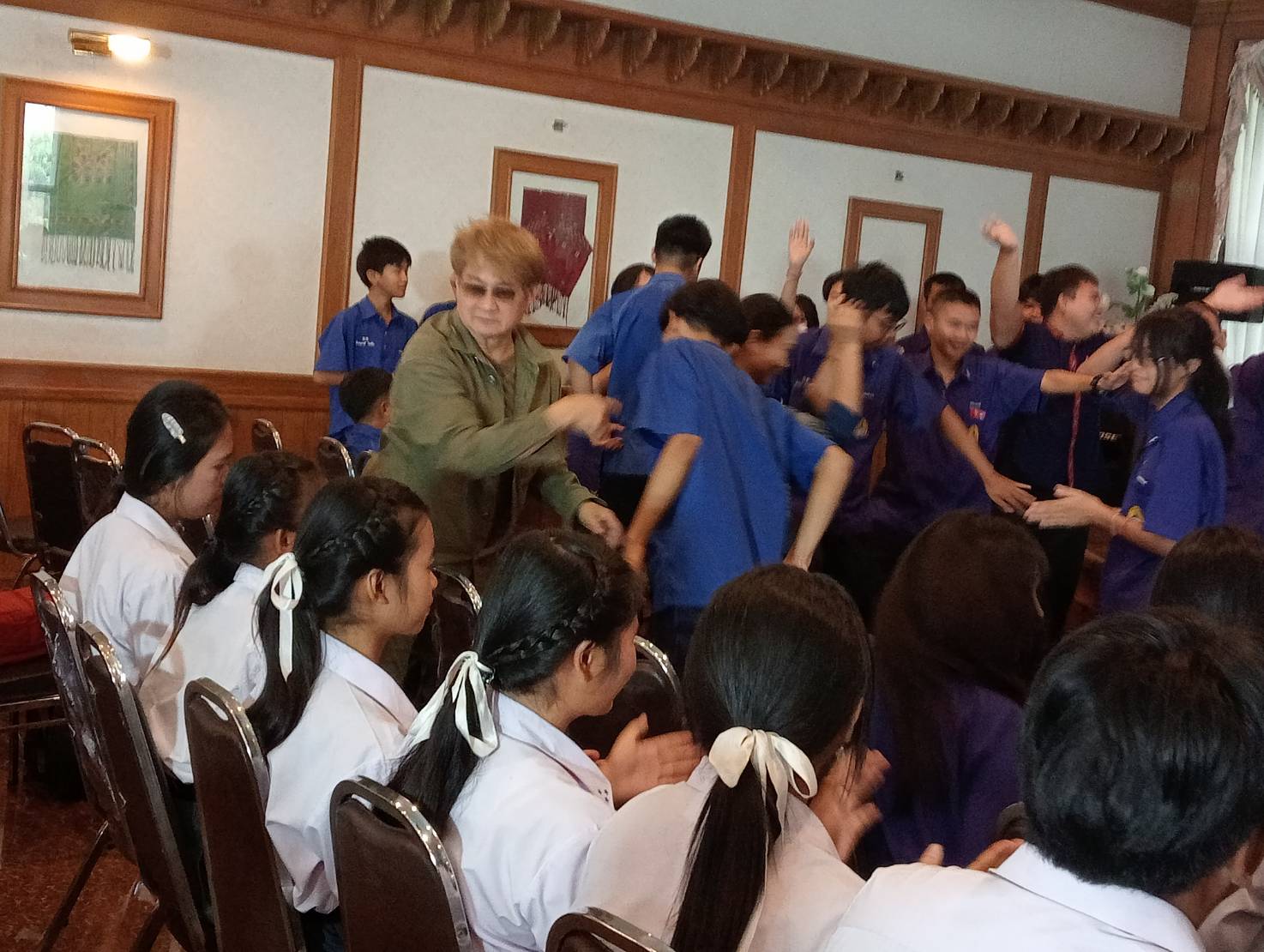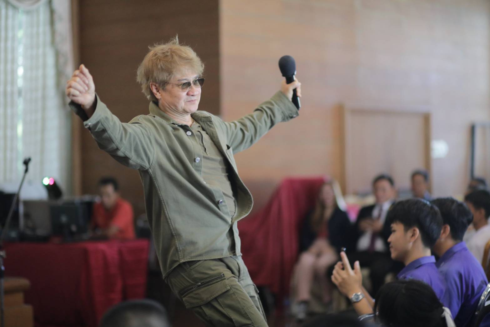 อย่างไรก็ตาม ในการทำหน้าที่วิทยากรของหรั่ง ร็อคเคสตร้า ศิลปินเพลงร็อคยุค 90 ที่ยังครองความนิยมไม่เสื่อมคลายจากหลายเพลงฮิต ยังได้ฟิทเจอริ่งเพลง “คิดถึง” กับ “ไข่มุก” นางเฉลิมขวัญ หล่อตระกูล นายก อบจ.กาฬสินธุ์ ก่อนที่จะนำครู นักเรียน ร่วมขับร้องและเปลี่ยนแนวเพลงจากร็อค เป็นเพลงลูกทุ่งและหมอลำอีสานอีกหลายบทเพลง บรรยากาศเต็มไปด้วยความความครึกครื้น สนุกสนานเป็นอย่างมาก
