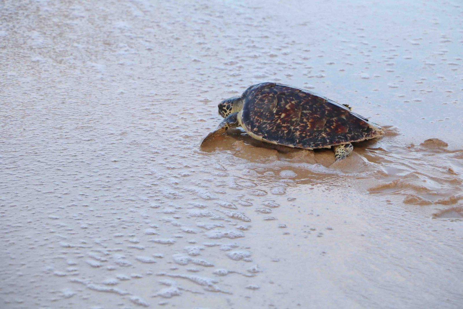 นายปรารพ แปลงงาน กล่าวว่า เต่ากระตัวนี้ เมื่อเดือนมิถุนายน มีชาวบ้านพบว่าติดเศษซากอวนลอยมาเกยตื้นที่ชายหาดปาง ในเขตอุทยานฯ เจ้าหน้าที่จึงเข้าทำการช่วยเหลือ ซึ่งพบว่าเมื่อตัดอวนออกจากตัวเต่าหมด เต่าอ่อนแรงในสภาพที่ยกหัวไม่ขึ้น ทุกคนก็กลัวว่ามันจะไม่รอด จึงได้ส่งไปอนุบาลต่อที่ศูนย์วิจัยและพัฒนาการเพาะเลี้ยงสัตว์น้ำชายฝั่งพังงา ซึ่งเจ้าหน้าที่ศูนย์ได้ดูแลอย่างดี จนฟื้นตัวและแข็งแรง จึงได้ถือโอกาสในเดือนสิงหาคมที่เพิ่งผ่านวันแม่แห่งชาติมา ปล่อยให้น้องเต่าได้กลับบ้านสู่ธรรมชาติ เมื่อเขาโตเต็มวัย ก็หวังว่าจะกลายเป็นแม่เต่ากลับมาวางไข่ที่หาดท้ายเหมืองอีกครั้งต่อไป