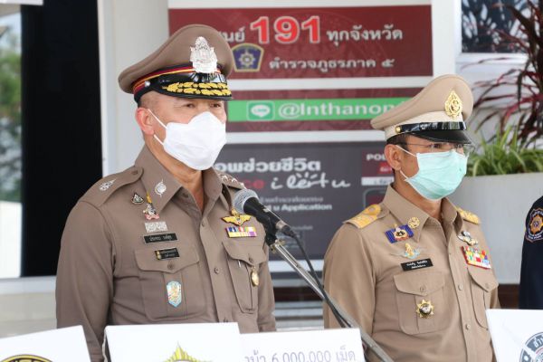 ผบช.ภ.5แถลงจับกุมแก๊งขนยาบ้า6ล.เม็ด