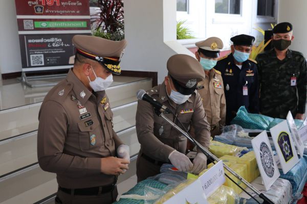 วันนี้ 27 พ.ค. 2564 เวลา 13.30 น. พลตำรวจโท ประจวบ วงศ์สุข ผู้บัญชาการตำรวจภูธรภาค 5 เป็นประธานแถลงข่าวการจับกุมปราบปรามยาเสพติดได้พร้อมผู้ต้องหาและของกลางจำนวนมาก โดยมี พลตำรวจตรี ชินวิช วิชัยธนพัฒน์ ผู้บังคับการตำรวจภูธรจังหวัดเชียงราย พ.ต.อ.มานพ เสนากุล รอง ผบก.ภ.จว.เชียงราย พ.ต.อ.รัฐพล น้อยช่างคิด ผกก.สส.ภ.จว.เชียงราย และ พ.ต.อ.ถนัด ชุ่มมะโน ผกก.สภ.เชียงแสน จ.เชียงราย พร้อมด้วย นายประเสริฐ จิตต์พลีชีพ ปลัดจังหวัดเชียงราย และนายไกรเลิศ ดาวเรือง ผู้อำนวยการ สำนักงาน ป.ป.ส.ภาค 5 พร้อมกับเจ้าหน้าที่ทหารของกองกำลังผาเมือง พร้อมหน่วยงานที่เกี่ยวข้อง ที่ได้ร่วมกันแถลงผลการจับกุม ขบวนการลักลอบลำเลียงยาเสพติด รายสำคัญ ผู้ต้องหา 2 คน พร้อมของกลางยาบ้าจำนวน 6 ล้านเม็ด พร้อมของกลางรายการอื่นๆ