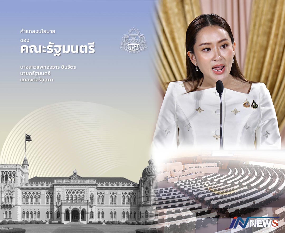 กรุงเทพฯ-คําแถลงนโยบายของคณะรัฐมนตรีนางสาวแพทองธาร ชินวัตร นายกรัฐมนตรี จะแถลงต่อรัฐสภาผู้แทนราษฏร ในวันพฤหัสบดีที่ ๑๒ กันยายน ๒๕๖๗ ตามที่ได้มีประกาศพระบรมราชโองการแต่งตั้งให้ดิฉันดํารงตําแหน่งนายกรัฐมนตรีเมื่อวันที่ 16 สิงหาคม พุทธศักราช2557 และแต่งตั้งรัฐมนตรีเมื่อวันที่ 3 กันยายน พุทธศักราช 2557 นั้น บัดนี้ คณะรัฐมนตรีได้กําหนดนโยบายการบริหารราชการแผ่นดินที่ยึดมั่นการปกครองในระบอบประชาธิปไตยอันมีพระมหากษัตริย์ทรงเป็นประมุข โดยมีความสอดคล้องกับ หมวด4 หน้าที่ของรัฐ และหมวด 5 แนวนโยบายแห่งรัฐตามรัฐธรรมนูญแห่งราชอาณาจักรไทย พุทธศักราช 2560 ตลอดจนยุทธศาสตร์ชาติเรียบร้อยแล้ว