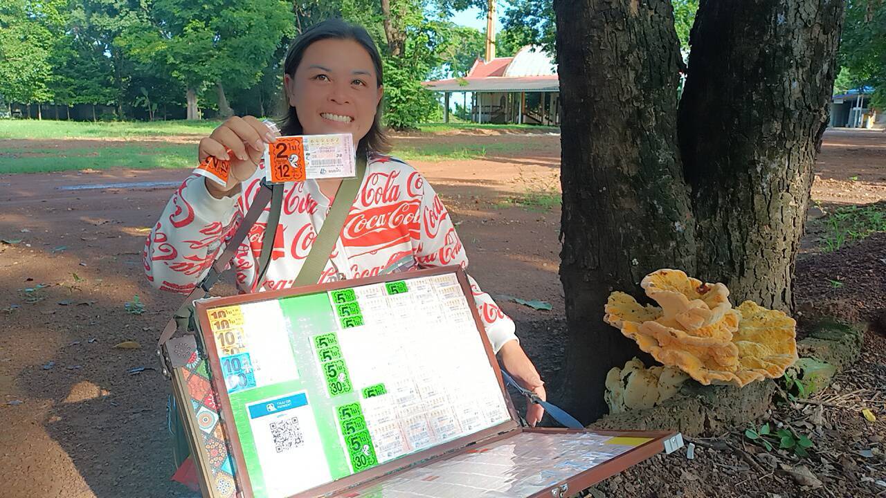 ต่อมาแม่ค้าขายลอตเตอรี่ขับรถจักรยานยนต์กลับจากขายลอตเตอรี่ที่หน้าโรงงานไฮเทค เมื่อเห็นเห็ดสีทองสวยงามอลามตา ผุดขึ้นมาอยู่ใต้โคนต้นคูนจึงจุดธูปเสี่ยงทายเพื่อเสี่ยงโชค และจากการจุดธูปเสี่ยงทายเห็นตัวเลข 3 ตัว ได้แก่เลข 462 ขณะเดียวกันนั้นแม่ค้าสาวขายลอตเตอรี่อุทานขึ้นมาด้วยน้ำเสียงสั่นเครือว่า "อุ้ยตรงกับเลขท้าย 3 ตัวหวยชุด 12 ล้าน 2 ใบพอดี"หวยชุดดังกล่าวหมายเลข649-462 และได้แบ่งขายหวยชุดจำนวน1ใบให้กับผู้สื่อข่าวเสี่ยงโชคงวดวันที่ 1ตค.67 ที่จะถึงนี้