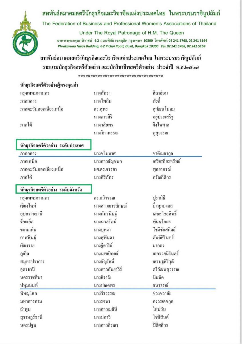 ศรีสะเกษ-วันที่ 2 ตุลาคม 2567 ในวงสภากาแฟจังหวัดศรีสะเกษ ต่างโจษจัน กล่าวขานถึงนางชไมมาศ ชาติเมธากุล ว่าเป็นคนศรีสะเกษที่เก่งมากสามารถคว้ารางวัลนักธุรกิจสตรีตัวอย่างระดับประเทศ ทำให้ผู้สื่อข่าว ได้โทรศัพท์สอบถาม นางชไมมาศ ชาติเมธากุล ว่าข้อเท็จจริงเป็นประการใด ซึ่งได้รับคำตอบว่า เมื่อวันที่ 1 ตุลาคม 2567 สหพันธ์สมาคมสตรีนักธุรกิจและวิชาชีพแห่งประเทศไทยในพระบรมราชินูปถัมภ์(สสธวท) จัดพิธี“ประกาศเกียรติคุณรางวัลสหพันธ์สมาคมสตรีนักธุรกิจและวิชาชีพแห่งประเทศไทยในพระบรมราชินูปถัมภ์ ประจำปี 2567 ที่โรงแรมแกรนด์ ไฮแอท เอราวัณ กรุงเทพฯมีวัตถุประสงค์เพื่อยกย่อง เชิดชู สตรีนักธุรกิจและนักวิชาชีพที่ประสบความสำเร็จให้เป็นแบบอย่างที่ดีแก่รุ่นต่อไป โดยคัดเลือกสตรีไทยผู้ประกอบธุรกิจ และสตรีไทยที่ประกอบวิชาชีพ ที่มีประวัติด้านธุรกิจ หรือวิชาชีพที่ประสบความสำเร็จ และมีการดำเนินชีวิตอย่างมีคุณธรรมเหมาะสมที่จะเป็นแบบฉบับและตัวอย่างให้แก่บุคคลทั่วไป ซึ่งในจำนวนผู้ที่ได้รับรางวัล นักธุรกิจสตรีตัวอย่าง ระดับประเทศ ภาคกลางได้แก่ นางชไมมาศ ชาติเมธากุล ประธานบริหารบริษัทสุขภัณฑ์ คริสติน่า (ประเทศไทย)จำกัด