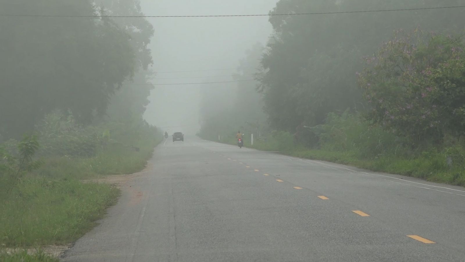 สงขลา-เช้าวันนี้ ( 14 ตุลาคม 2567) ที่หมู่ 4 ต.ท่าโพธิ์ อ.สะเดา จ.สงขลา ช่วงถนนสายบ้านคลองแงะ - บ้านบาโรย ได้มีหมอกลงมาหนาจัด ทำให้ผู้ใช้รถใช้ถนน ต้องใช้ความระมัดระวังในการขับขี่ เนื่องจากหมอกลงหนา ทำให้ทัศนวิสัยในการขับขี่มองเส้นทางและถนนไม่ชัดเท่าที่ควร ดังนั้นผู้ขับขี่รถต้องเปิดไฟหน้า ไฟหรี่ เพื่อป้องกันการอาจจะทำให้เกิดอุบัติเหตุขึ้นได้ เพราะหมอกที่หนาจัด ทำให้มองรถที่วิ่งผ่านไปมา ไม่ชัดเท่าที่ควร และไม่ควรใช้ความเร็ว ให้ขับรถช้าๆด้วย เพื่อความปลอดภัย