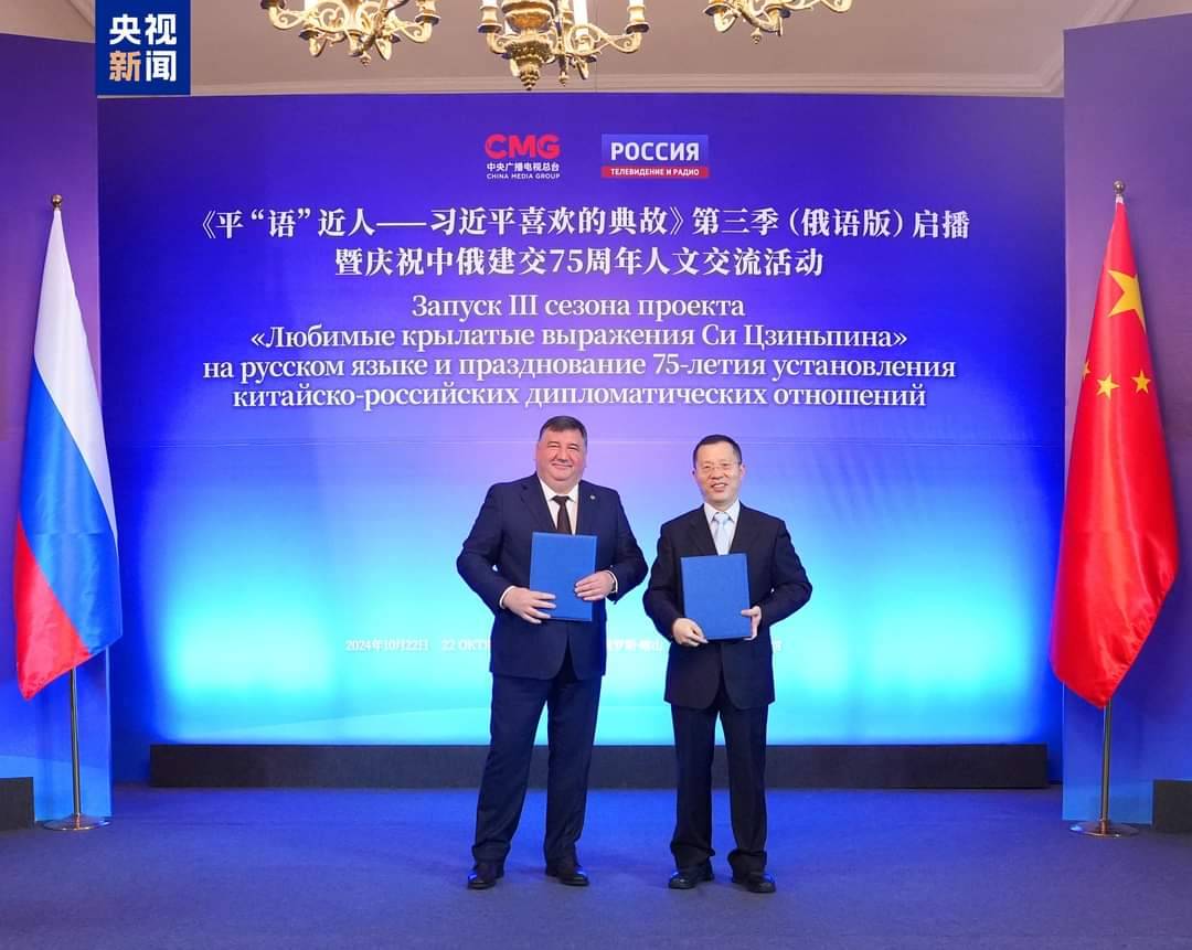 China Media Group (CMG) สื่อหลักของจีน และ สื่อหลักของรัสเซีย All-Russian State Television and Radio Broadcasting Corporation จัดงานแลกเปลี่ยนวัฒนธรรมเนื่องในโอกาสครบรอบ 75 ปีการสถาปนาความสัมพันธ์ทางการทูตระหว่างจีนและรัสเซียในเมืองคาซานเมื่อวันอังคารที่ 22 ตุลาคม พ.ศ.2567