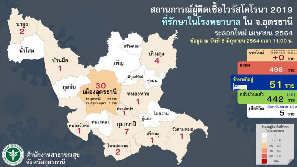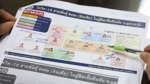 วันที่ 8 มิถุนายน 2564 เวลา 14.00 น. นายอุเทน หาแก้ว รอง สสจ.อุดรธานี เปิดเผยว่า ผู้ติดเชื้อสายพันธุ์เดลต้า หรือ สายพันธุ์อินเดีย ใน จ.อุดรธานี ก่อนหน้ามีรายงานแล้ว 7 ราย คือ ที่ อ.กุมภวาปี 1 ราย เป็นคนงานก่อสร้างที่มาจากหลักสี่ กทม. , อ.กุดจับ เป็นเด็ก 1 ราย ที่พ่อแม่ทำงานก่อสร้างที่หลักสี่ , อ.โนนสะอาด 1 ราย ที่กลับมาจากหลักสี่ , อ.บ้านดุง 4 ราย ที่มาจากหลักสี่ทั้งหมด และชุดหลังที่เป็นการส่งตรวจแยกสายพันธุ์ที่ศูนย์วิทยาศาสตร์การแพทย์ จากกลุ่มที่มีการแพร่ระบาดเป็นกลุ่มเป็นก้อน ของคลัสเตอร์งานสู่ขวัญ ที่จัดงานตั้งแต่วันที่ 12 พ.ค.ได้ตรวจหาเชื้อและเข้าสู่กระบวนการรักษาแล้วช่วงระยะเวลาหนึ่ง ซึ่งผู้ป่วยบางส่วนได้หายกลับบ้านแล้ว แต่เนื่องจากการส่งผลตรวจล่าช้า เพิ่งได้รับแจ้งยืนยันเมื่อ 2 วันก่อนว่า ในกลุ่มนื้มีสายพันธุ์อินเดีย