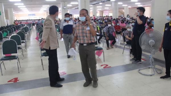 แบ่งการรับวัคซีนไว้ 2 ส่วน หากเป็นยี่ห้อแอสตราซินิก้าจะติดสติกเกอร์สีเขียว ยี่ห้อซิโนแวคจะติดสติกเกอร์สีแดง ซึ่งเป็นไปตามการจัดสรรจากทางรัฐบาล ขึ้นอยู่กับการจัดลำดับในการลงทะเบียน ทราบว่ามีบางรายที่ต้องการเปลี่ยนยี่ห้อในการฉีด เราไม่ได้มีการบังคับฉีดอยู่แล้ว หากต้องการเปลี่ยนก็แจ้งเปลี่ยนได้ แต่จะไม่ได้รับการฉีดในทันที ต้องกลับไปเริ่มต้นใหม่ลงทะเบียนใหม่ ต้องรอคิวในการฉีดอีกครั้ง ขึ้นอยู่กับความสมัครใจของแต่ละคน