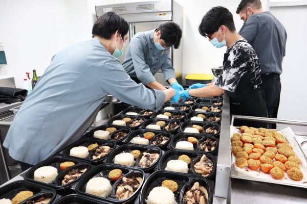 วันที่ 10 มิถุนายน 2564 วิทยาลัยผู้ประกอบการสร้างสรรค์นานาชาติรัตนโกสินทร์ มหาวิทยาลัยเทคโนโลยีราชมงคลรัตนโกสินทร์ จัดโครงการ Escoffier care รังสรรค์เมนูอาหารสุดพิเศษ โดย เชฟ Frédéric Hamann และผู้ช่วย ในเมนู Émincé de volaille forestière, riz pilaf et tomate Provençale (Chicken Mushroom Sauce with Pilaf Rice) เพื่อร่วมเป็นกำลังใจให้กับบุคลากรทางการแพทย์ ณ โรงพยาบาลนครปฐม ในการปฏิบัติหน้าที่ เพื่อต่อสู้กับวิกฤตการณ์โรคติดต่อ COVID 19 ซึ่งจังหวัดนครปฐม มีพื้นที่ติดกับกรุงเทพมหานคร ทำให้มีการติดเชื้ออย่างต่อเนื่องซึ่งบุคคลากรทางการแพทย์ในโรงพยาบาลนครปฐม เป็นศูนย์กลางของการประสานงานและดำเนินการเป้นเคครือข่ายในสถานการณ์ดังกล่าว สำหรับเมนูที่มีการจัดให้ถือว่าเป็นเมนูพิเศษเพื่อขอบคุณและให้กำลังใจในยามวิกฤติที่ทุกคนต้องประสบชะตาร่วมกันในเวลานี้