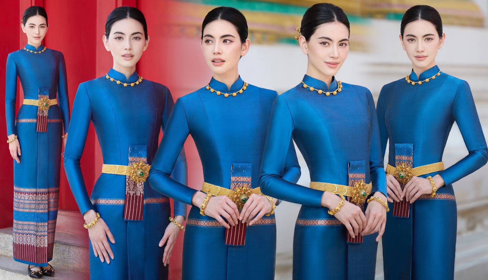 ชุดไทยบรมพิมานสีน้ำเงินครามเรือนแสน ของแม่หยัว'ใหม่ ดาวิกา'ในงานทอดกฐิน