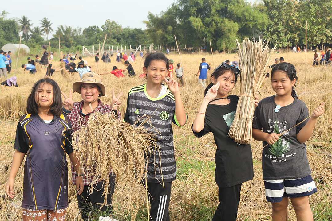 นอกจากนักเรียนจะได้เกี่ยวข้าวแล้ว ยังเรียนรู้ผ่าน 7 ฐานการเรียนรู้ ตั้งแต่การฟาดข้าว สีข้าว ฝัดข้าว แปรรูปเป็นข้าวกล้องและโจ๊ก ไปจนถึงการเรียนรู้เกษตรผสมผสาน และการฟื้นฟูดินด้วยปอเทือง บรรยากาศเต็มไปด้วยเสียงนวดข้าว สีข้าว และเพลง "เกี่ยวความพอดี" ที่เด็กๆ ร่วมกันขับร้องในครั้งนี้