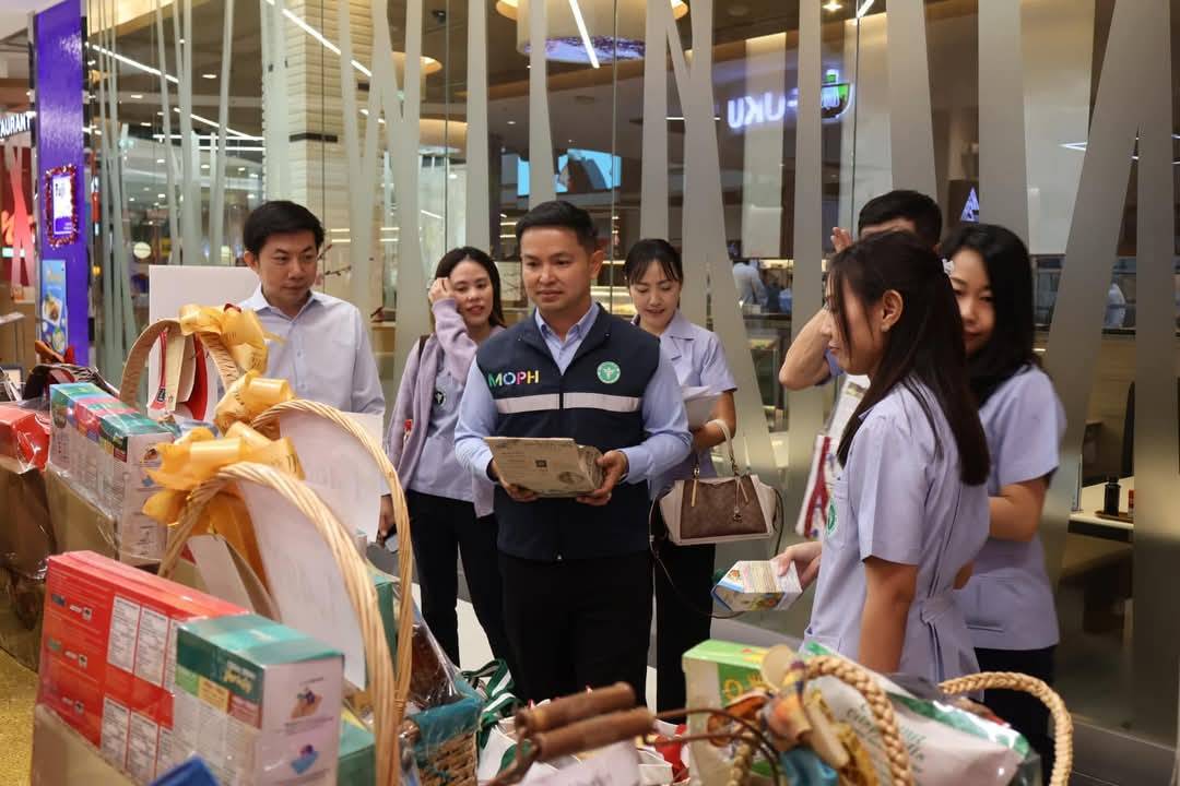 ผู้สื่อข่าวรายงานว่า เมื่อเวลา 10.30 น.ของวันที่ 17 ธันวาคม 2567 ที่ห้างสรรพสินค้า โรบินสัน ไลฟ์สไตล์ เซ็นเตอร์ กาญจนบุรี น.พ.ธีรพจน์ ฟักน้อย นายแพทย์สาธารณสุขจังหวัดกาญจนบุรี พร้อมด้วย ภก.วรรณะ วีระผาสุก รองนายแพทย์สาธารณสุขจังหวัดกาญจนบุรี และผู้เกี่ยวข้อง ออกสุ่มตรวจกระเช้าของขวัญปีใหม่ที่วางจำหน่ายตามห้างสรรพสินค้า ซูเปอร์มาร์เก็ต และร้านค้าต่างๆ โดยนายแพทย์สาธารณสุขจังหวัดกาญจนบุรี เปิดเผยว่า " ช่วงเทศกาลส่งท้ายปีเก่าต้อนรับปีใหม่ พ.ศ.2568 ผู้บริโภคนิยมซื้อกระเช้าของขวัญมอบแด่คนที่รักและเคารพนับถือ ซึ่งทางห้างสรรพสินค้า ซูเปอร์มาร์เก็ต สหกรณ์ ร้านค้า มักจะนำผลิตภัณฑ์อาหารสำเร็จรูป มาจัดเป็นกระเช้าของขวัญเพื่อจำหน่ายให้แก่ประชาชน ดังนั้น เพื่อการคุ้มครองผู้บริโภคให้ได้รับความปลอดภัย คุ้มค่า และได้ประโยชน์ จึงขอแนะนำให้ผู้บริโภคเลือกซื้อของขวัญในเทศกาลปีใหม่