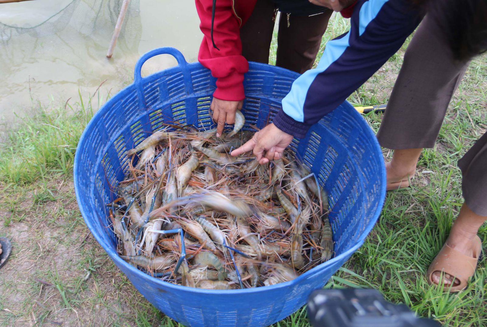 กาฬสินธุ์-กลุ่มผู้เลี้ยงกุ้งก้ามกราม ที่จังหวัดกาฬสินธุ์ยิ้มออก แนวโน้มขายกุ้งสดจากปากบ่อคึกคักก่อนช่วงเทศกาลปีใหม่ เริ่มมีออร์เดอร์จากพ่อค้าเร่ พ่อค้าขาประจำ ร้านอาหาร สถานที่ท่องเที่ยว และห้างสรรพสินค้าชั้นนำ เข้ามาวันละกว่า 30 ตัน เพื่อเปิดตลาดเรียกลูกค้า เตรียมกุ้งบิ๊กไซส์ไว้จับขายรายละ 2-5 ตันแต่คงไม่เพียงพอจำหน่าย เนื่องจากลดพื้นที่เลี้ยงลงเป็นจำนวนมาก สาเหตุจากอากาศวิปริตกุ้งตาย ต้นทุนการผลิตสูง เรียกร้องรัฐบาลควบคุมราคาพันธุ์ลูกกุ้งและอาหารกุ้ง