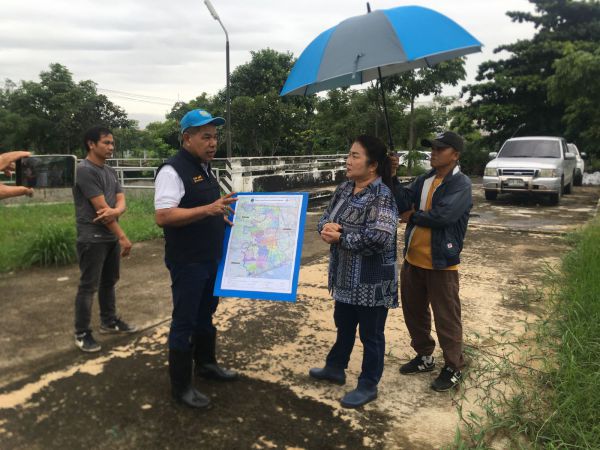 สส.จอมขวัญ-ผอ.ชลประทานดูแก้มลิงเตรียมพร่องน้ำรับมือมวลน้ำ-น้ำท่วม