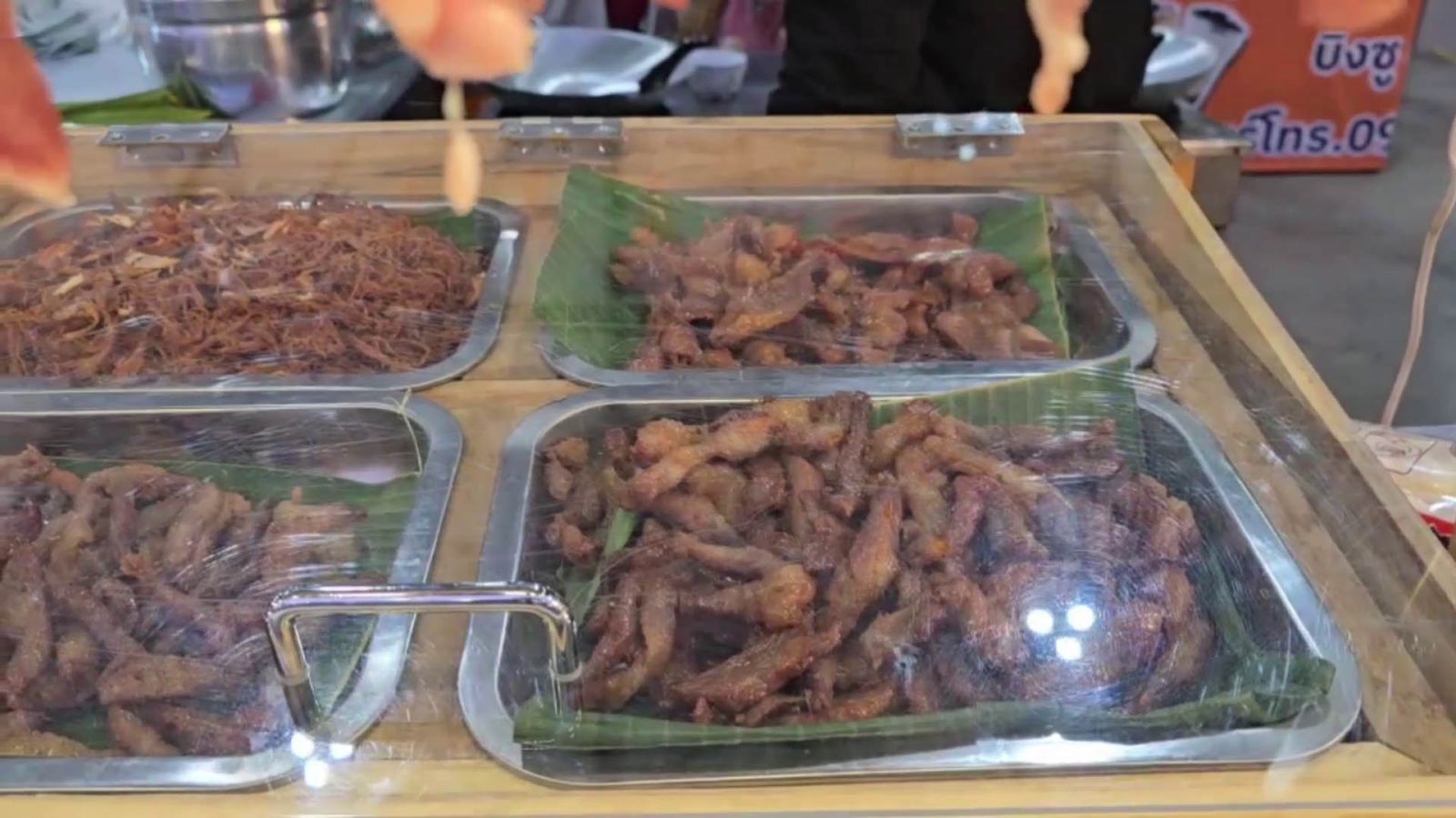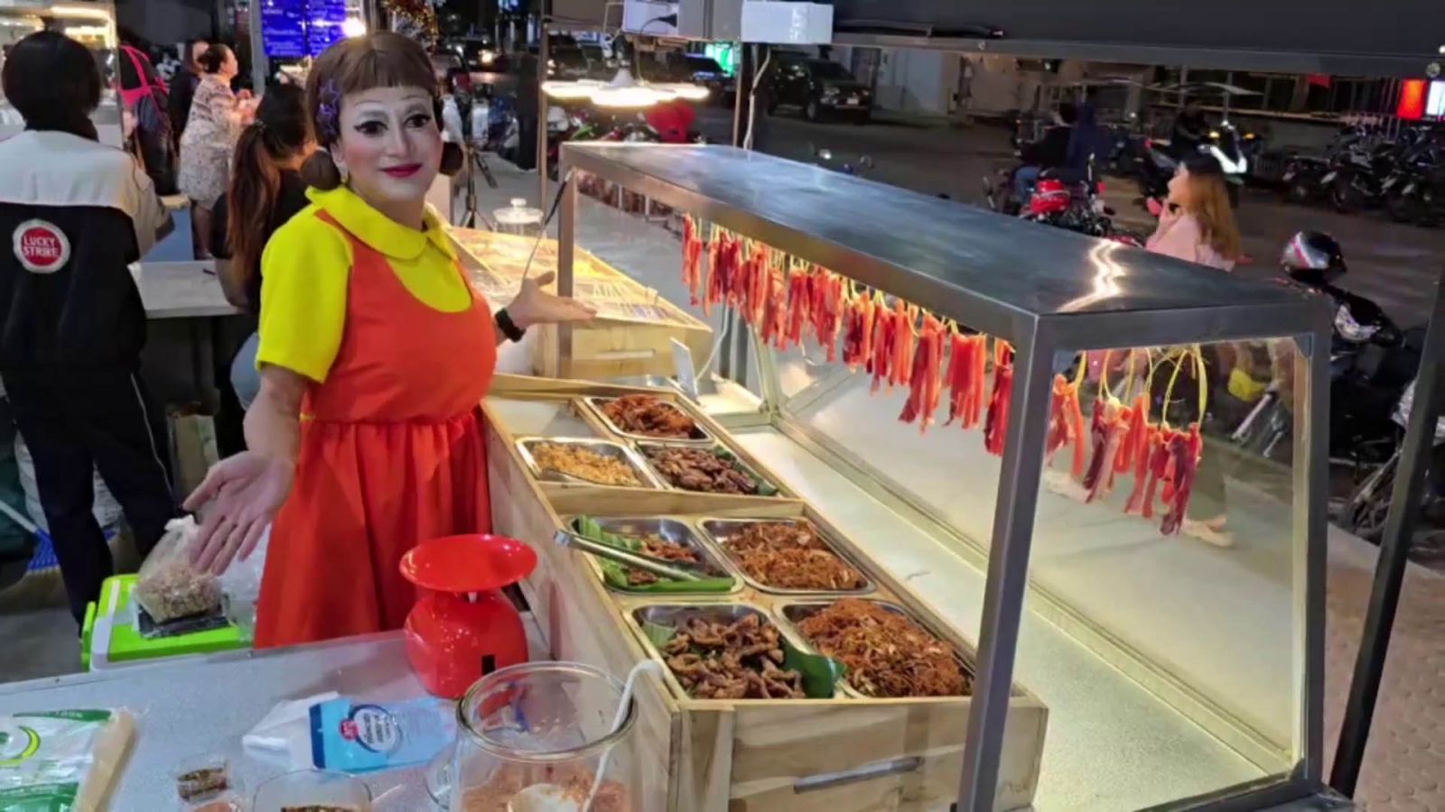 นครราชสีมา-คุณยายวัย 95 ปี โคราช ช่วยหลานขายปลาหมึกย่างหมูทอดวันแรก แต่งชุดโกโกวา เรียกลูกค้าสร้างสีสัน ลูกค้าอุดหนุนแน่นร้าน