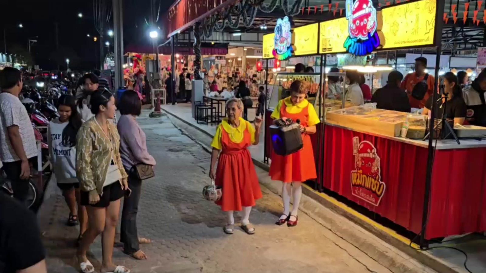 คุณยายวัย95โคราชแต่งชุดโกโกวาช่วย หลานขายปลาหมึกย่างหมูทอดวันแรก