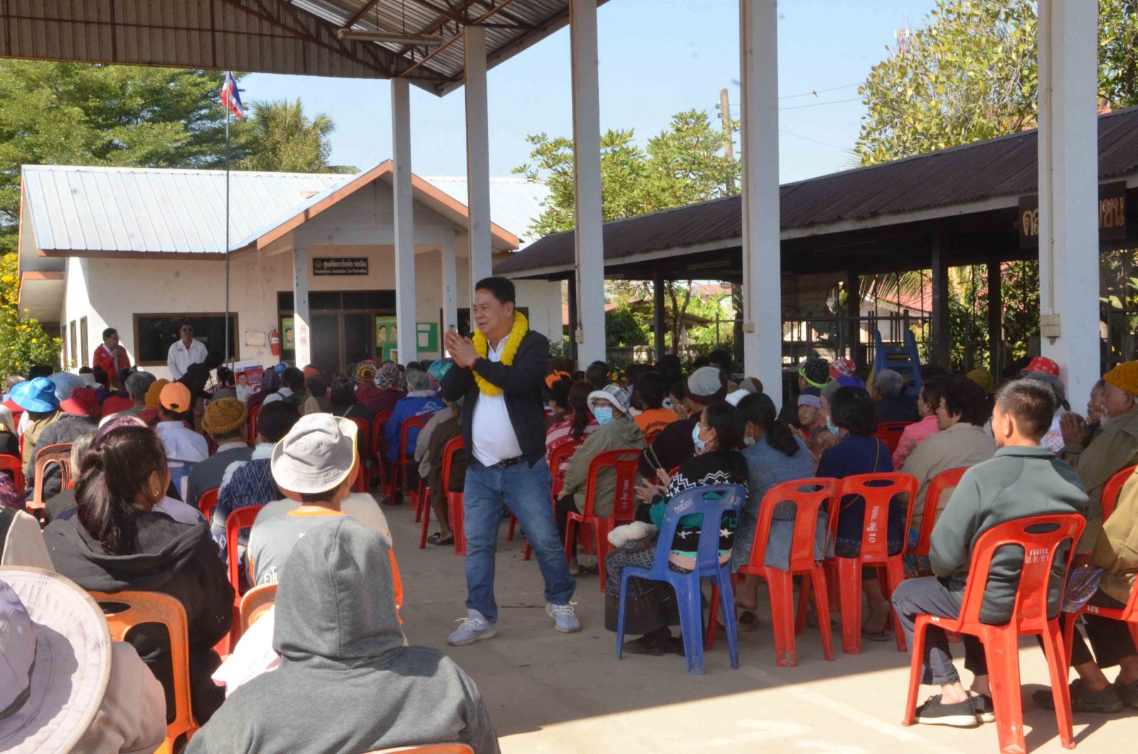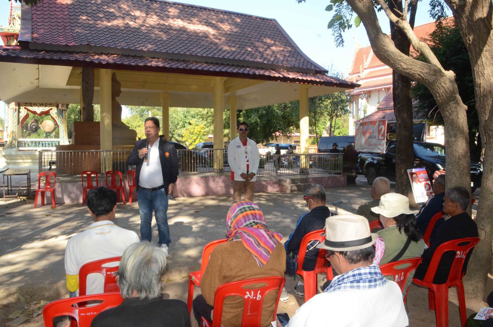 ที่วัดบ้านโนนแพง ต.ลำพาน อ.เมือง จ.กาฬสินธุ์ นายเจริญ จันดอน หรือ “เสี่ยนุ” เจ้าของฟาร์มไก่ชนและควายงามชื่อดัง ผู้สมัครส.อบจ.อำเภอเมืองกาฬสินธุ์ เขต 2 พรรคเพื่อไทย พร้อมทีมงานได้เปิดเวทีปราศรัยหาเสียงขอคะแนนกับประชาชนบ้านท่าอุดม บ้านวังยูง บ้านโนนแพง บ้านท่าแสง และบ้านโนนยาง ต.ลำพาน