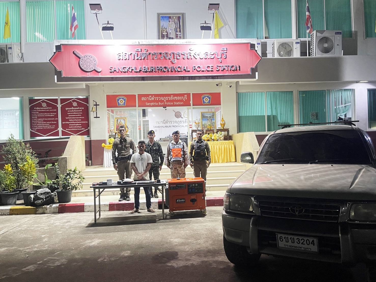 จากนั้นทางเจ้าหน้าที่ตำรวจได้ควบคุมตัวผู้ต้องหาพร้อมด้วยของกลางส่งพนักงานสอบสวน สถานีตำรวจภูธรสังขละบุรี เพื่อทำการสืบสวน สอบสวนขยายผลถึงกลุ่มขบวนการเพื่อติดตามตัวมาดำเนินคดีตามกฎหมายต่อไป