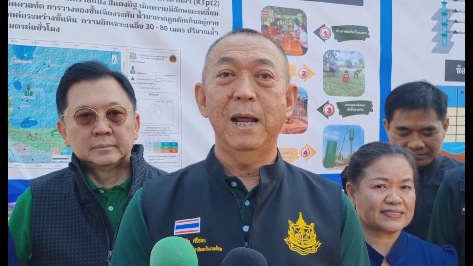 นายเฉลิมชัย ศรีอ่อน รัฐมนตรีกระทรวงทรัพยากรธรรมชาติและสิ่งแวดล้อม กล่าวว่า กระทรวงทรัพยากรธรรมชาติและสิ่งแวดล้อม มีความห่วงใยความเป็นอยู่ของพี่น้องประชาชน และต้องการให้ประชาชนมีโอกาสสร้างอาชีพตลอดทั้งปี มีรายได้ มีคุณภาพชีวิตที่ดีและมีความสุข จึงได้มอบหมายให้หน่วยงานที่เกี่ยวข้อง ดำเนินการทั้งในด้านเศรษฐกิจ สังคม และสิ่งแวดล้อม โดยเฉพาะด้านบริหารจัดการทรัพยากรน้ำ เพื่อให้ประชาชนมีน้ำสำหรับการอุปโภค บริโภคที่เพียงพอ ผ่านโครงการจัดหาแหล่งน้ำบาดาลระยะไกลเพื่อแก้ปัญหาในพื้นที่ขาดแคลนน้ำหรือน้ำเค็ม