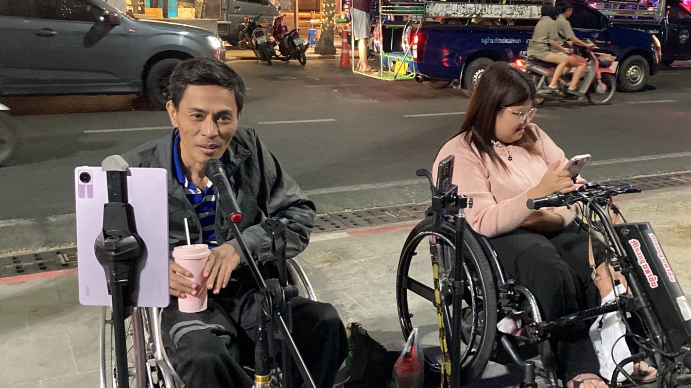 จากการพูดคุยสอบทราบทราบชื่องทั้งสอง คือ นายธนวัฒน์ แก่นแดง อายุ 47 ปี และอลิสา พุ่มศิลป์ 21 ปี ทั้งสองเป็นคู่รักที่จะพากันลากรถวีลแชร์มาเปิดแสดงความสามารถร้องเพลงเปิดหมวก พร้อมแสดงหลักฐานบัตรวณิพกสามารถหากินในพื้นที่สาธารณะได้มายืนยัน ก่อนนายธนวัฒน์ จะให้ข้อมูลว่า ที่ผ่านมาเคยใช้รถเข็นสามล้อจำหน่ายผลไม้ให้กับนักท่องเที่ยวบริเวณริมชายหาดพัทยา