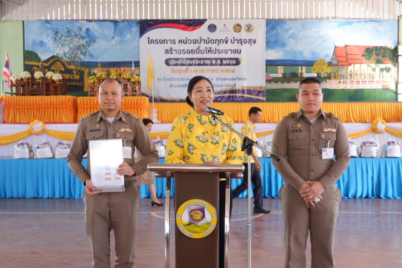 ส่งเสริมกิจกรรมเพื่อการเรียนรู้ด้านศาสนา ศิลปะ วัฒนธรรม งานประเพณี และมรดกภูมิปัญญาของท้องถิ่น และปลูกฝังการสร้างค่านิยมที่ดีในสังคมไทยแก่เด็ก และเยาวชน และผู้ร่วมกิจกรรมในการจัดโครงการหน่วยบำบัดทุกข์ บำรุงสุข สร้างรอยยิ้มให้ประชาชนจังหวัดปราจีนบุรี ประจำปีงบประมาณ พ.ศ. ๒๕๖๘ ครั้งที่ ๑ ณ โรงเรียนวัดระเบาะไผ่ ตำบลหนองโพรง อำเภอศรีมหาโพธิ จังหวัดปราจีนบุรี โดย นายวีระพันธ์ ดีอ่อน ผู้ว่าราชการจังหวัดปราจีนบุรี พร้อมด้วยรองผู้ว่าราชการจังหวัดปราจีนบุรี ผู้บริหารจังหวัดปราจีนบุรี หัวหน้าส่วนราชการ ผู้แทนหน่วยงานรัฐวิสาหกิจ ร่วมพบปะรับฟังปัญหาเชิงพื้นที่และข้อเสนอแนะจากผู้นำท้องถิ่นท้องที่ และประชาชน เพื่อกำหนดทิศทางการขับเคลื่อนจังหวัดปราจีนบุรี เพื่อแก้ปัญหาและบรรเทาความทุกข์ยากเดือดร้อนของประชาชนอย่างเป็นระบบและยั่งยืน รวมถึงการมอบสิ่งของบรรเทาทุกข์แก่กลุ่มผู้เปราะบางยากไร้และผู้มีรายได้น้อย และมอบทุนการศึกษาจากกองทุนต่าง ๆ ของส่วนราชการ รัฐวิสาหกิจและภาคเอกชนเพื่อส่งเสริมการเข้าถึงโอกาสทางการศึกษาของเด็กและเยาวชน