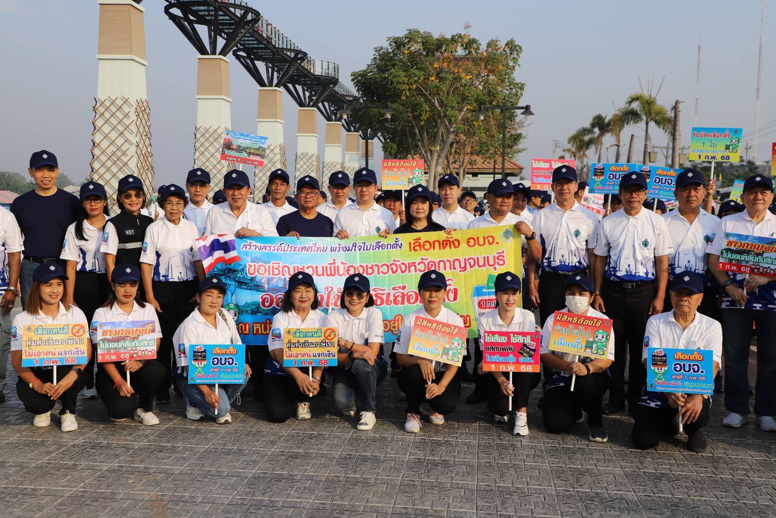สำนักงานคณะกรรมการการเลือกตั้งประจำจังหวัดหวัดกาญจนบุรี ร่วมกับองค์การบริหารส่วนจังหวัดกาญจนบุรี คณะกรรมการศูนย์ส่งเสริมพัฒนาประชาธิปไตยจังหวัดกาญจนบุรี (ศส.ปชต.จังหวัดกาญจนบุรี) และภาคีเครือข่ายระดับจังหวัด จัดกิจกรรมเดินรณรงค์ประชาสัมพันธ์การเลือกตั้งสมาชิกสภาองค์การบริหารส่วนจังหวัดกาญจนบุรี โดยมีวัตถุประสงค์เชิญชวนให้ผู้มีสิทธิเลือกตั้งสมาชิกสภาองค์การบริหารส่วนจังหวัดกาญจนบุรีออกมาใช้สิทธิเลือกตั้งในวันเสาร์ที่ 1 กุมภาพันธ์2568 และให้การเลือกตั้งเป็นไปด้วยความเรียบร้อย สุจริต เที่ยงธรรม และชอบด้วยกฎหมายต่อไป