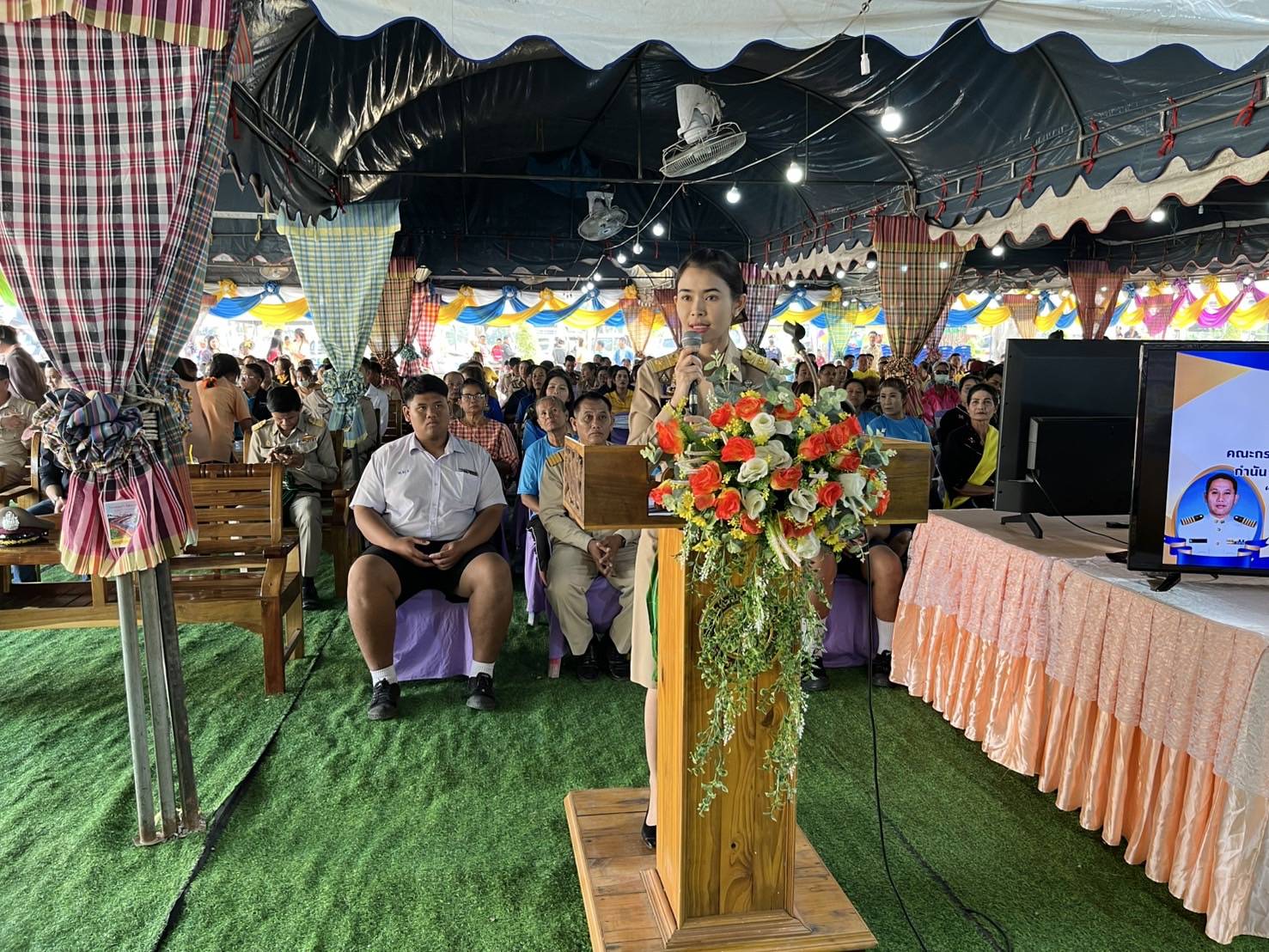โดยมี นายประสงค์ กระต่ายทอง กำนันตำบลพระแท่นประธานชมรมกำนันผู้ใหญ่บ้านอำเภอท่ามะกา ผู้เข้าประกวด กำนัน ยอดเยี่ยมนางอรทัย วงศ์วัชรมงคลนายอำเภอท่ามะกากล่าวรายงานต้อนรับ รองผู้ว่า และคณะตรวจประเมิน ได้แก่พ.ต.อ.สมบัติ โพธิ์งาม ผกก สภ.ท่าเรือ นายจอน สุทธิบุตร นายกเทศมนตรีเทศบาลบาลตำบลพระแท่นลำพระยา นายทรงศักดิ์ โชตินิติวัฒน์ นายกเทศมนตรีเทศบาลตำบลพระแท่น นายปัณณพัฒน์ นริศวร์ภาคิน ตัวแทน ท่านสส.ยศวัฒน์ มาไพศาลสิน สส.พรรคภูมิใจไทย เขต 3 กาญจนบุรี นายสมโภชน์บุญวัน สาธารณสุข อำเภอท่ามะกา และ พัฒนาการจังหวัด สภาวัฒนธรรมจังหวัด คณะครู อาจารย์ในตำบลพระแท่น กำนัน ผู้ใหญ่บ้านตำบลพระแท่นและในเขตอำเภอท่ามะกา ชาวบ้านตำบลพระแท่นทุกหมู่บ้าน ผู้นำชุมชนในตำบลพระแท่น และผู้ที่เกี่ยวข้องเข้าร่วมงานครั้งนี้เป็นจำนวนมาก โดยมีนางอรทัย วงศ์วัชรมงคล นายอำเภอท่ามะกา กล่าวรายงาน