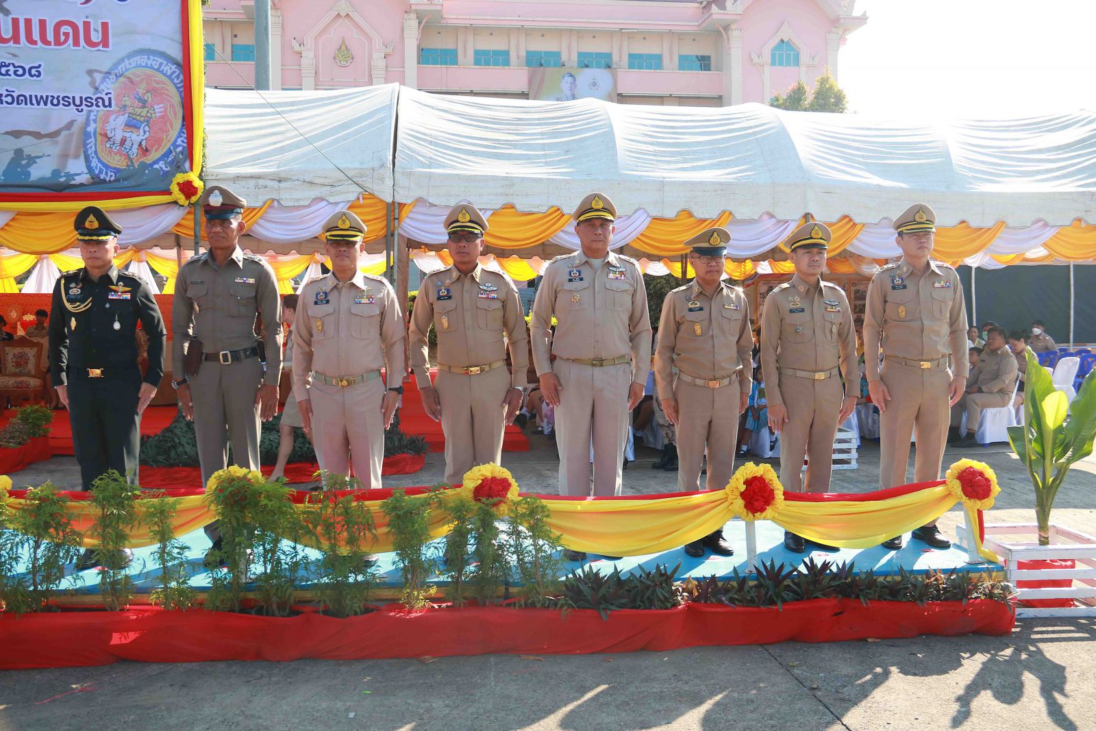 นายกองโทสมพงษ์ หอมสนิท หัวหน้าฝ่ายอำนวยการกองบังคับการกองอาสารักษาดินแดนจังหวัดเพชรบูรณ์ กล่าวว่า กองบังคับการกองอาสารักษาดินแดนจังหวัดเพชรบูรณ์ ประกอบด้วย กองร้อยอาสารักษาดินแดน จำนวน 12 กองร้อย แยกเป็นกองร้อยอาสา รักษาดินแดนจังหวัด จำนวน 1 กองร้อย และกองร้อยอาสารักษาดินแดนอำเภอ จำนวน 11 กองร้อย ปัจจุบันมีกำลังพล สมาชิกกองอาสารักษาดินแดนจำนวน 168 นาย ตลอดระยะเวลาที่ผ่านมา สมาชิกกองอาสารักษาดินแดนนอกจากจะต้องปฏิบัติภารกิจ ตามที่ได้กำหนดไว้ในพระราชบัญญัติกองอาสา รักษาดินแดน พ.ศ. 2497 แล้ว ยังต้องปฏิบัติภารกิจตามนโยบายเร่งด่วนของกองบัญชาการกองอาสารักษาดินแดน ภารกิจในการรักษาความปลอดภัยในชีวิตและทรัพย์สินของประชาชน การป้องกันและปราบปราม การแพร่ระบาดของยาเสพติด การป้องกันและปราบปรามการบุกรุกตัดไม้ทำลายป่า การอนุรักษ์ทรัพยากรธรรมชาติและสิ่งแวดล้อม การให้ความช่วยเหลือผู้ประสบอุทกภัยและภัยธรรมชาติ ซึ่งสมาชิกกองอาสารักษาดินแดนทุกนายได้ปฏิบัติหน้าที่ด้วยความเสียสละ มีผลงานที่ปรากฏ บังเกิดผลดีต่อทางราชการ โดยกิจกรรมในวันนี้ ประกอบด้วยการประกอบพิธีสงฆ์ การอ่านสารของผู้บัญชาการกองอาสารักษาดินแดน การกล่าวให้โอวาทแก่สมาชิกกองอาสารักษาดินแดน การมอบเข็มอาสารักษาดินแดนสดุดี ประจำปี 2568 และมอบทุนมูลนิธิกองอาสารักษาดินแดน แก่บุตรสมาชิกกองอาสารักษาดินแดน
