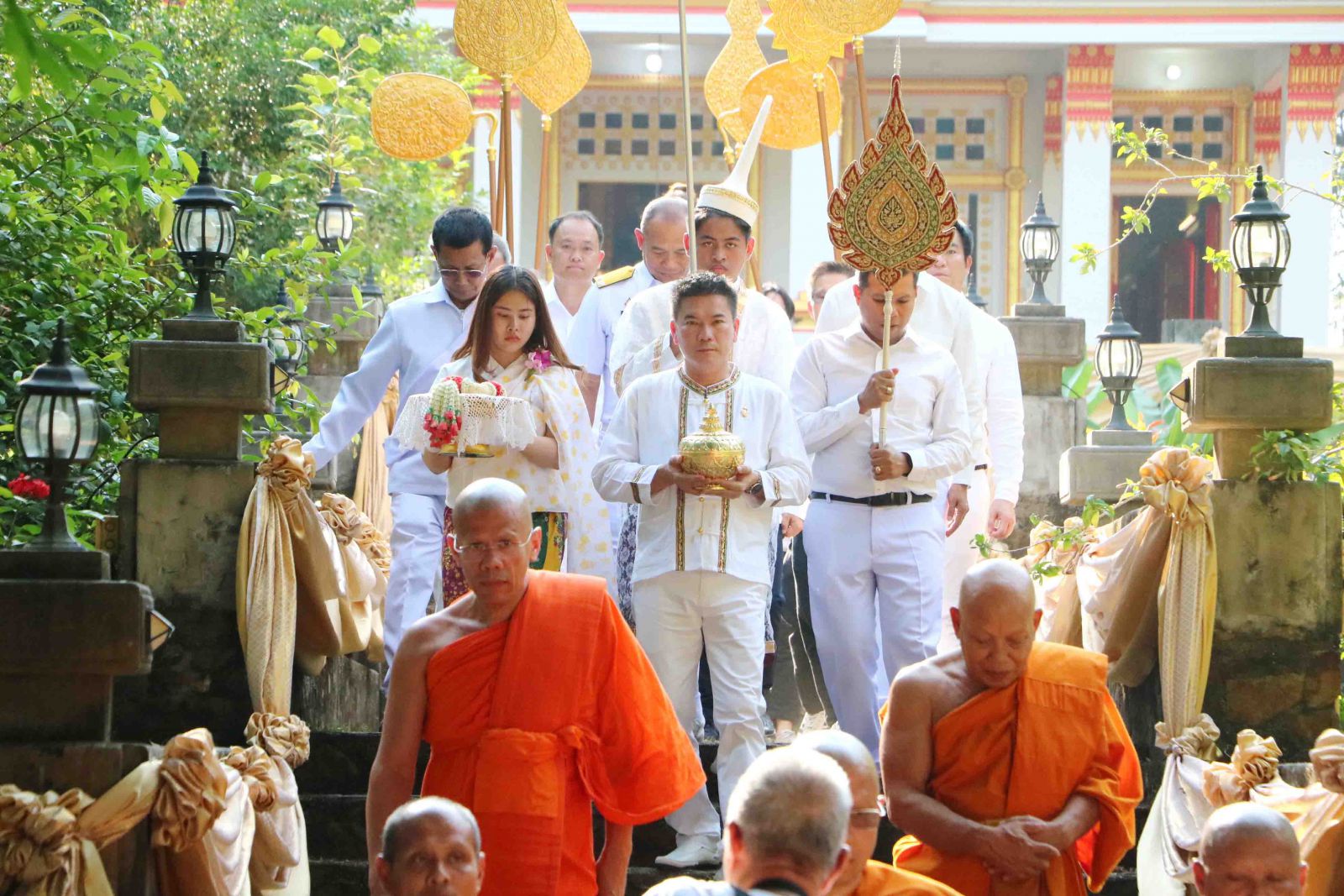 พังงา-ผู้ว่าพังงานำชาวพังงาร่วมอัญเชิญพระศรีบรมธาตุขึ้นราชรถแห่รอบเมืองเก่าตะกั่วป่า ในวันมาฆบูชา