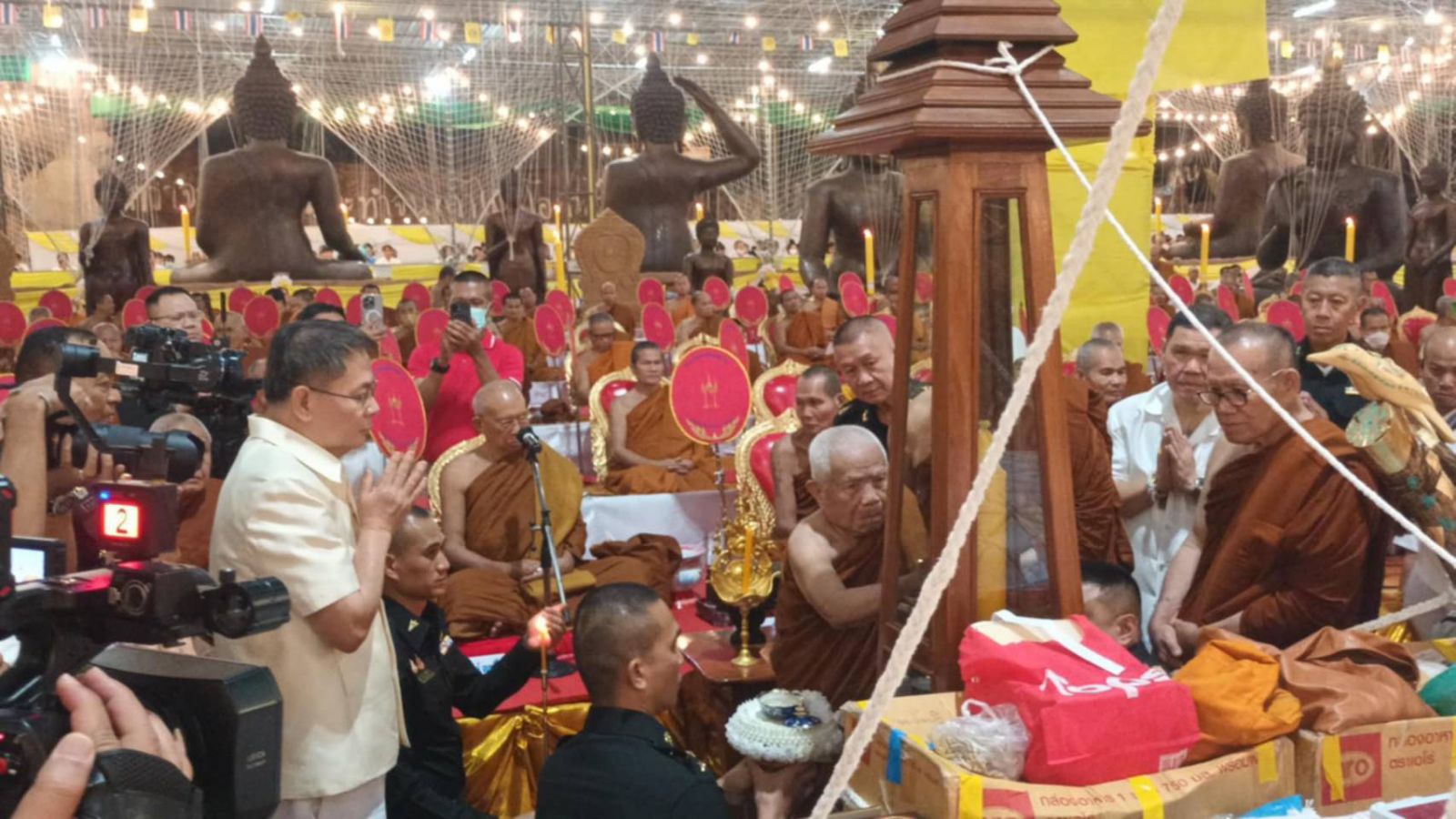 ชัยภูมิ-ศิษยานุศิษย์พระเกจิดังนับหมื่นที่เข้าร่วมงานมุทิตาจิตพระอาจารย์นกอายุครบรอบ 61 ปีหลังเสร็จพิธี แห่ส่องเลขบาตรน้ำมนต์ที่มีหยดเทียนเป็นตัวเลขเด็จ 961ไปเสี่ยงโชคในงวดนี้