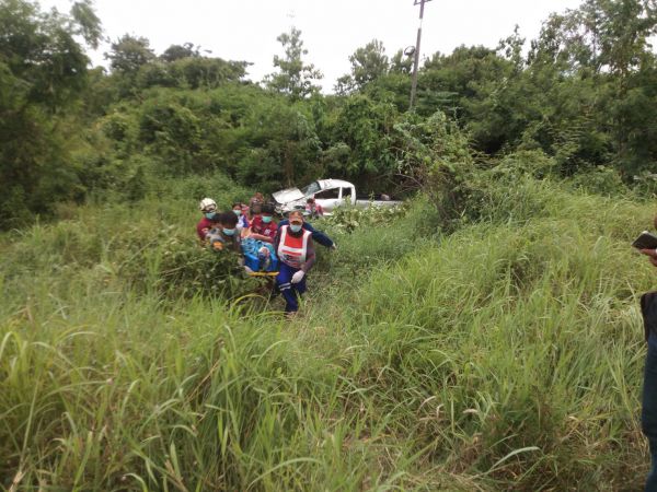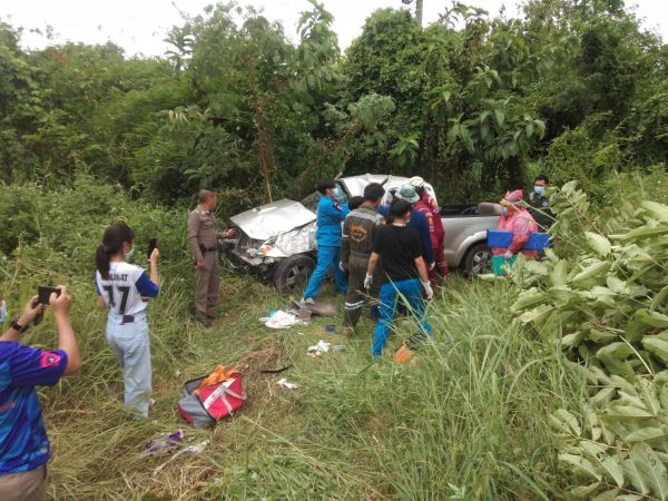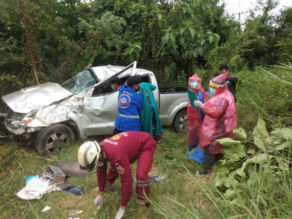 กระบะเสียหลักตกข้างทาง6ชีวิตหวิดดับ