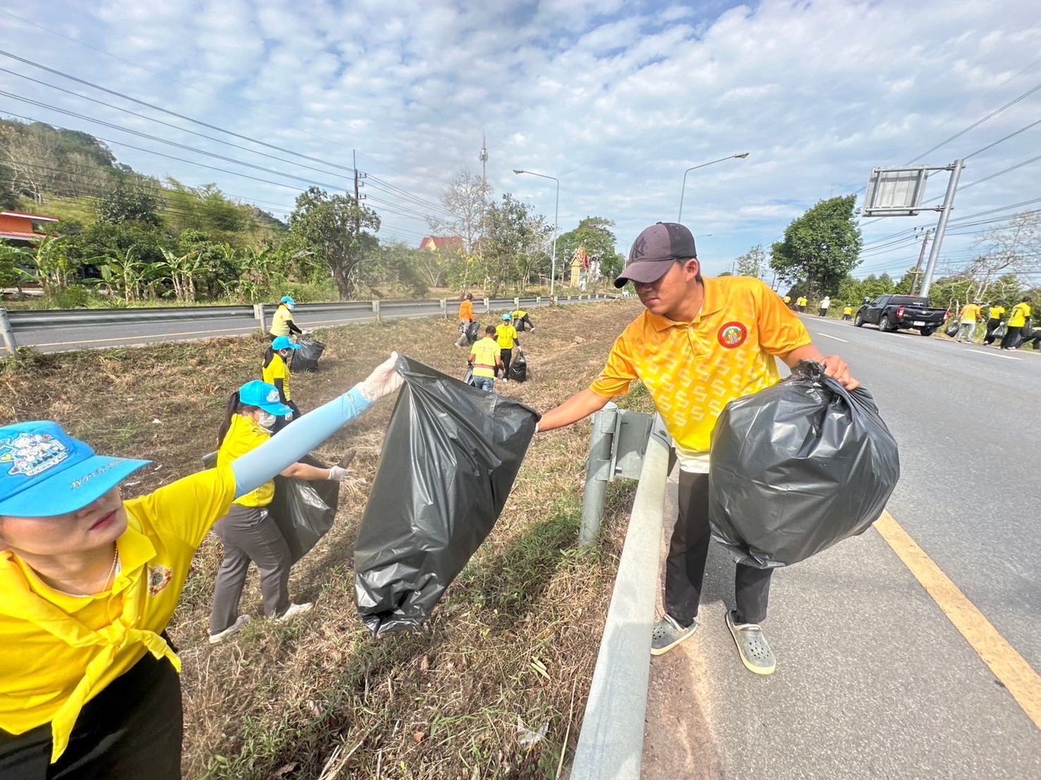 ชาวนายายอามรุกจัดกิจกรรมบิ๊กคลีนนิ่ง เก็บขยะตามร่องกลางถนนยาว10กม.