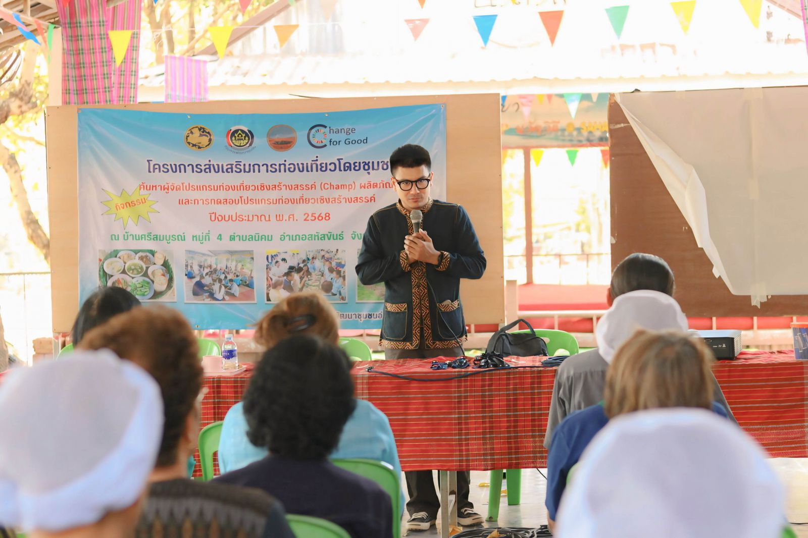 วันที่ 1 มี.ค.68 ที่ศูนย์ท่องเที่ยวบ้านศรีสมบูรณ์ ต.นิคม อ.สหัสขันธ์ จ.กาฬสินธุ์ นางสาวกัญญาภัค แจ่มใส นายอำเภอสหัสขันธ์ เป็นประธานเปิดการอบรมโครงการ ส่งเสริมการท่องเที่ยวเชิงสร้างสรรค์ กิจกรรม ค้นหาผู้จัดโปรแกรมท่องเที่ยวเชิงสร้างสรรค์ (Champ)ผลิตภัณฑ์ดิน และการทดสอบโปรแกรม ท่องเที่ยวเชิงสร้างสรรค์ โดยมีนางสาวนิตยา สุพรม พัฒนาการอำเภอสหัสขันธ์ นายพิเชษฐ์ ปรีจิตต์ กำนันตำบลนิคม ประธานชมรมส่งเสริมการท่องเที่ยว ร้านอาหาร โรงแรม ที่พัก อ.สหัสขันธ์ พร้อมเครือข่ายผู้จัดการโปรแกรมท่องเที่ยวสร้างสรรค์ตำบลนิคม จำนวน 30 คน