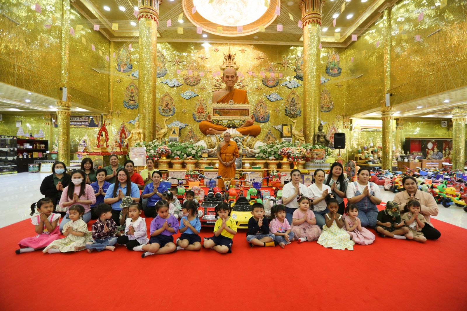 หลวงพี่น้ำฝน เจ้าอาวาสวัดไผ่ล้อม กล่าวว่าสำหรับโครงการแจกรถจักรยานเด็กเล็กและเด็กโตก็จะเป็นหนึ่งในภารกิจที่วัดไผ่ล้อมได้ดำเนินการมาตลอดทุกปีในปีนี้ก็ได้ดำเนินการมอบให้กับศูนย์เด็กเล็กในพื้นที่อำเภอเมืองนครปฐม ทุกแห่งเพื่อให้ไปใช้ภายในศูนย์เด็กเล็กซึ่งครูและน้องน้องที่มารับก็ดีใจกันมาก ส่วนของโรงเรียนบ้านหลับมืนพรวน บาส นันทวัฒน์ ซึ่งเป็นลูกศิษย์ลูกค้าก็ได้ประสานเข้ามาอาตมาก็ยินดีที่จะส่งมอบให้กับน้องน้องที่อยู่พื้นที่ห่างไกลซึ่งคิดว่าเป็นประโยชน์ในการใช้เป็นพาหนะในการศึกษา ใช้พัฒนาร่างกายให้แข็งแรงซึ่งจะเป็นการทุ่น ค่าใช้จ่ายในครัวเรือนให้กับผู้ปกครอง และกุมารสมบัติก็เป็นกุมารหนึ่งเดียวที่พระเดชพระคุณหลวงพ่อพูล ท่านได้ดูแลตั้งแต่ครั้งท่านยังมีชีวิตอยู่ สิ่งเหล่านี้ก็เป็นความเชื่อและความศรัทธาที่ญาติโยมได้รับไปเมื่อเขาสมหวังก็นำมาส่งต่อให้กับสังคมสิ่งเหล่านี้เป็นวัฏจักรในการโอบอ้อมถึงกันระหว่างบ้าน วัด โรงเรียน ตามหลักบวร ซึ่งวัดไผ่ล้อมก็พร้อมที่จะเป็นศูนย์กลางแห่งการประสานงานความช่วยเหลือให้กับญาติโยมในทุกด้านด้วยเช่นกัน