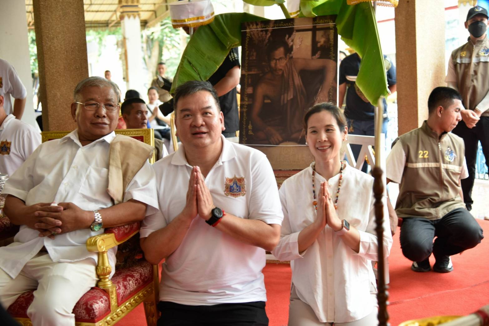 โดยในพิธีดังกล่าวถือเป็นการจัดงานหาพิธีร่วมได้ยากซึ่งมีการเชิญฆราวาสจอมขมังเวทย์ทั่วเมืองไทย 10 สำนัก 11 ฆราวาส นำโดย อาจารย์ป่อง น่วมมานา สำนักบ้านมีดี อาจารย์บูรณ์ น่วมมานา สำนักบ้านมีดี อาจารย์ยอด สำนักหอมหามงคลชัยพระเจ้าเก้าตื้อ จ.เชียงใหม่ อาจารย์ปู่เสริม ชฎาแก้ว จ.สระแก้ว อาจารย์เฉลิมชัย มลวิเชียร ศิษย์สายเขาอ้อ จ.พัทลุง อาจารย์ประคอง รุ่นเจริญ สำนักบ้านเสน่ห์มอญ อาจารย์พีรณัฐ กิจนาคะเกศ ศิษย์สายวิชาหลวงปู่ศุข วัดปากคลองมะขามเฒ่า สืบวิชามาจากหลวงพ่อมหาโพธิ์ วัดคลองมอญ จากชัยนาท อาจารย์เสกสรรค์ ศิษย์วิชาสายหลวงปู่หงษ์ สุสานทุ่งมน จ.สุรินทร์