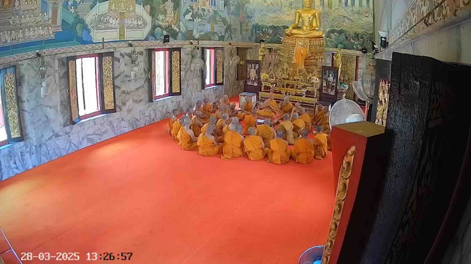 คณะสงฆ์วัดไผ่ล้อมตั้งสติปาติโมกข์จบ พิธีการช่วงแผ่นดินไหว