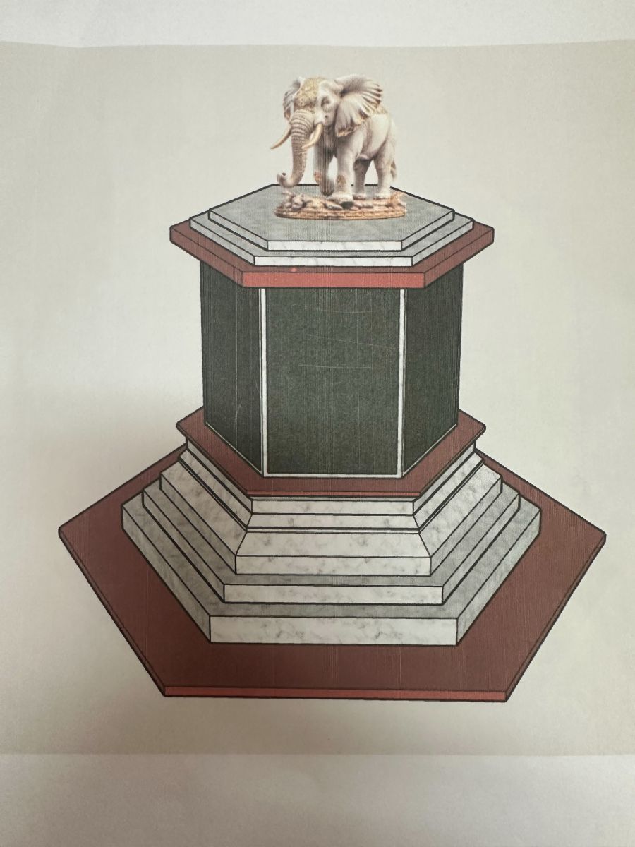 โดยรูปแบบ “หลักจารึกตระกูลภู” นั้น ออกแบโดยกองช่างเทศบาลตำบลยางตลาด งบประมาณการก่อสร้าง 600,000 บาท สร้างด้วยหินแกรนิตสีโทนดำ 6 เหลี่ยม ฐานล่างกว้าง 6 เมตร หน้าฐานคล้ายเกล็ดกระดองเต่า สื่อถึงความสำเร็จยั่งยืนยาวนาน เหมือนเต่าที่อายุยืน ให้คนยางตลาดตระกูลภู มีความสำเร็จที่ยั่งยืนยาวนานเช่นกัน สูงประมาณ 3.84 เมตร ฐานบนกว้าง 4.58 เมตร ด้านบนติดตั้งรูปปั้นช้าง ที่หมายถึงความมั่นคงและความเป็นสิริมงคล ด้านข้างด้านหนึ่งสลักประวัติอำเภอ ด้านข้างที่ 2 สลักรายนามผู้ร่วมบริจาค และอีก 4 ด้านสลักนามสกุล “ภู” สีทอง ซึ่งรวบรวมไว้เบื้องต้นจำนวน 1,313 สกุลด้วยกัน