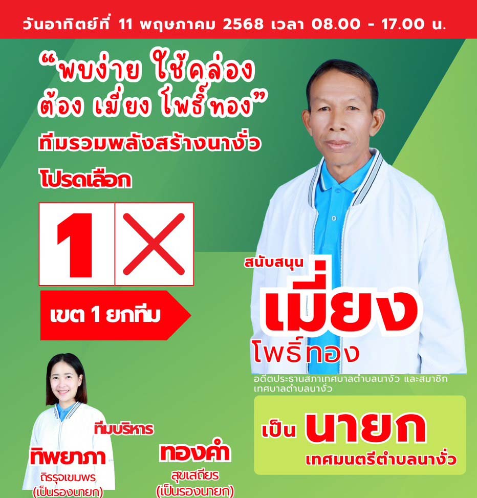 จับกระแสการสมัครรับเลือกตั้งนายกฯ-สมาชิกเทศบาลทั่วประเทศวันที่2 ที่พังงารับสมัครนายกเล็กเมืองตะกั่วป่าวันแรก คึกคัก นายกชายทิ้งเทศบาลตำบลบางนายสีข้ามห้วยท้าชิงนายกอ้วนแชมป์เก่า/นครราชสีมา-ศึกเลือกตั้งนายกเทศบาลตำบลสูงเนิน ดุเดือด แข่งกัน 3 กลุ่มใหญ่ ตัวเต็งเฮียเหรียญ ได้เบอร์ 3 ส่วนผู้ท้าชิง เฮียป๊อก เบอร์ 2, เฮียยุทธ เบอร์ 1 พร้อมสอดแทรกและเพชรบูรณ์ “นายเมี่ยง โพธิ์ทอง ได้หมายเลข 1 ลงชิงตำแหน่งนายกเทศมนตรีตำบลนางั่ว ท่ามกลางบรรยากาศคึกคัก”