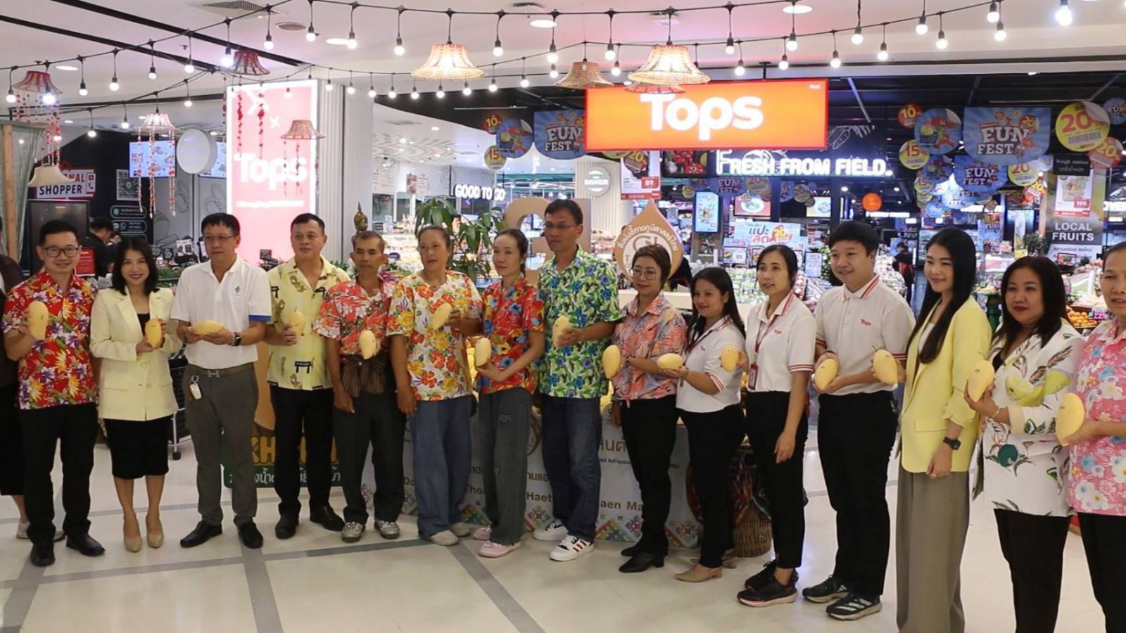 วันที่ 9 เม.ย.68 ผู้สื่อข่าวรายงานว่าที่บริเวณด้านหน้าท๊อปส์ซุปเปอร์มาร์เก๊ต สาขาเซ็นทรัลพลาซ่าขอนแก่น ยังคงได้รับความสนใจจากผู้ที่ชื่นชอบมะม่วงน้ำดอกไม้สีทอง มาทำการเลือกซื้อมะม่วงน้ำดอกไม้สีทองฤดูกาลผลิต 2568 ซึ่งกลุ่มเกษตรกรผู้ปลูกมะม่วงน้ำดอกไม้สีทองบ้านแฮดขอนแก่น ร่วมกับสำนักงานพาณิชย์ จ.ขอนแก่น และ ท๊อปส์ ซุปเปอร์มาร์เก๊ต ได้กำหนดจัดกิจกรรมขึ้นด้วยการนำมะม่วงน้ำดอกไม้สีทองจากไร่มาจำหน่ายให้กับลูกค้าโดยตรง โดยไม่ผ่านพ่อค้าคนกลางในราคาสุดพิเศษ โดยมีผู้ที่ชื่นชอบมะม่วงมาเลือกชม เลือกซื้อและชิมผลผลิตทางการเกษตรสินค้าส่งออกของจังหวัตลอดทั้งวัน