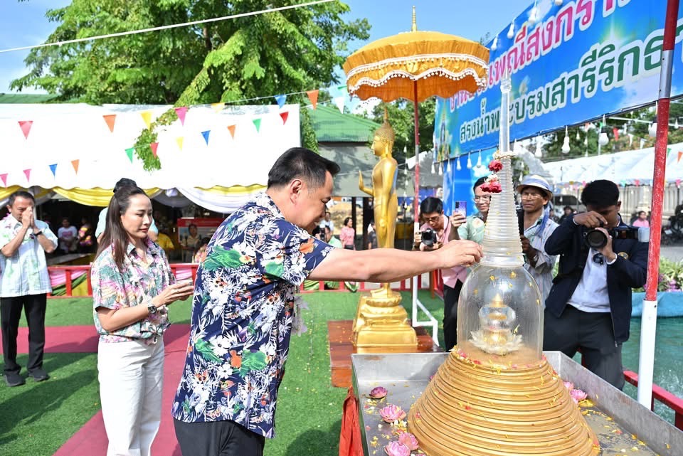 นครปฐม-รองนายกรัฐมนตรี และรัฐมนตรีว่าการกระทรวงมหาดไทย พร้อมคณะ ร่วมพิธีแห่ผ้าห่มองค์พระปฐมเจดีย์ และสรงน้ำพระเนื่องในประเพณีสงกรานต์ ประจำปี 2568