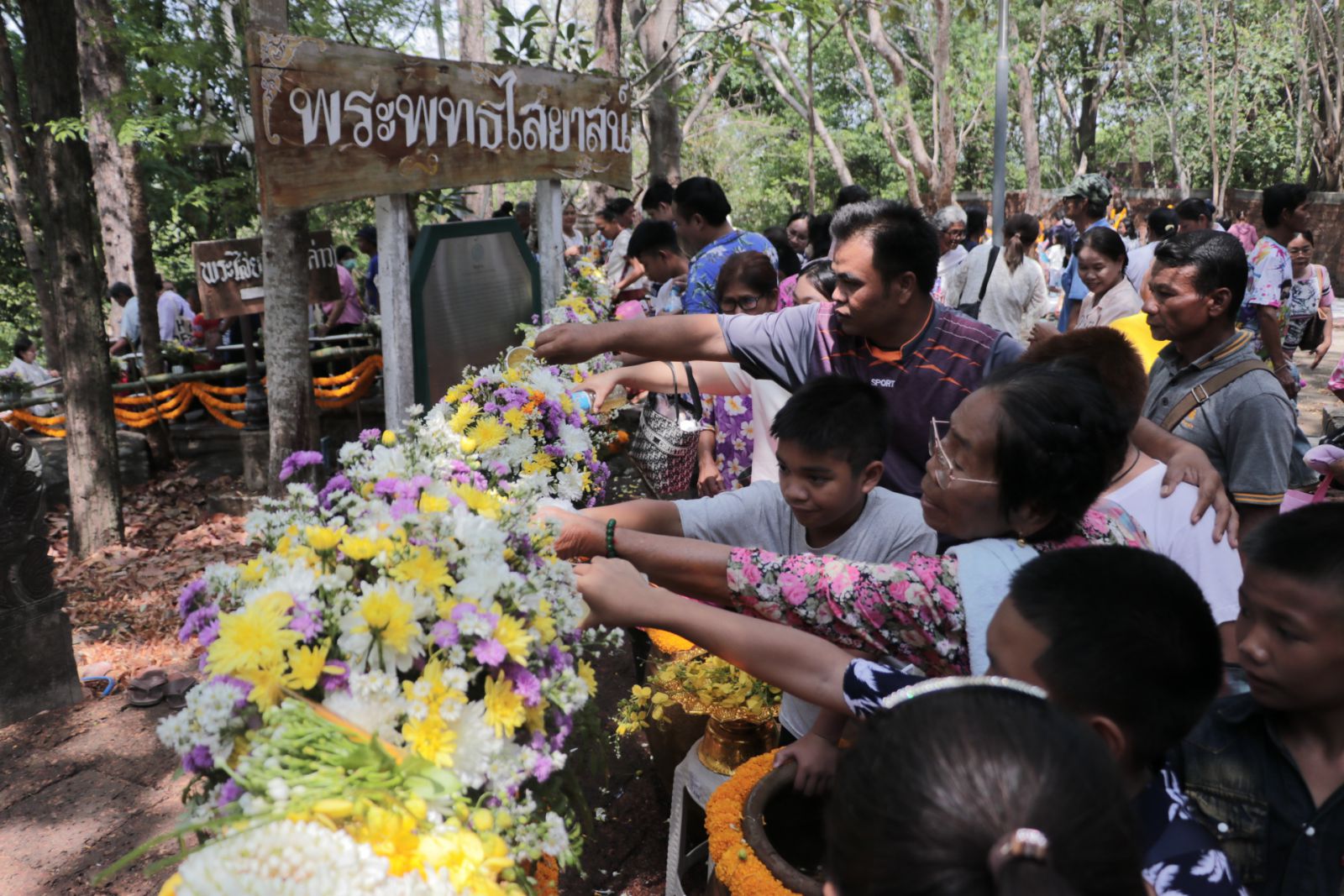 'สรงน้ำพระนอนตะแคงซ้าย'วัดพุทธนิมิต สายมูทั่วสารทิศร่วมงานประเพณีคึกคัก